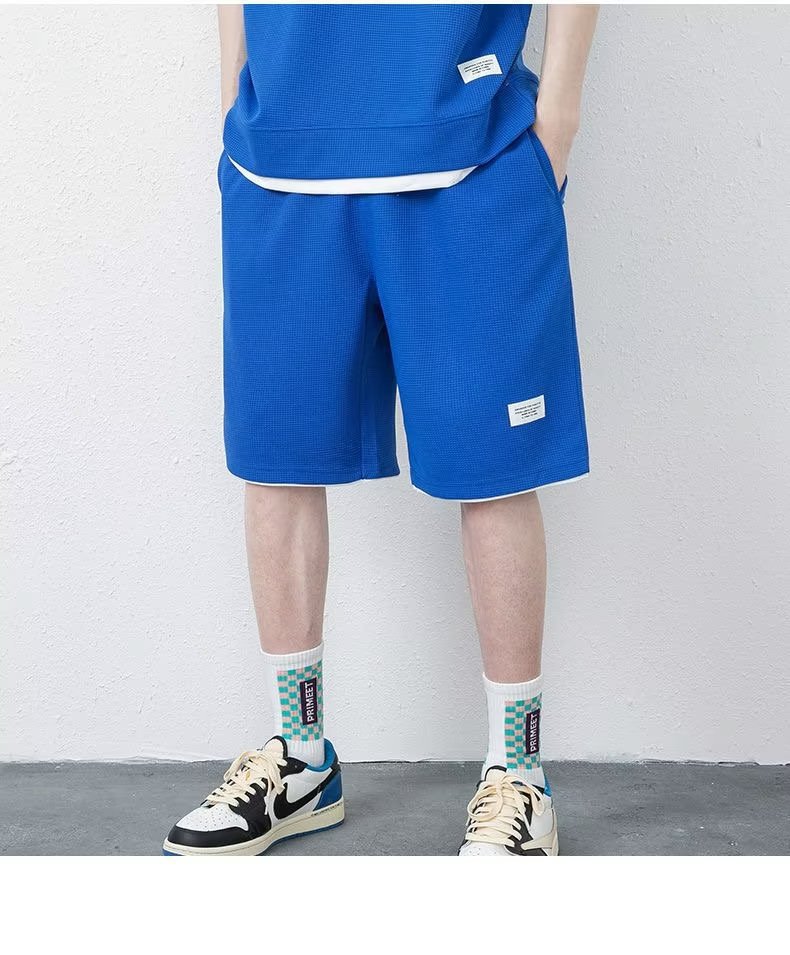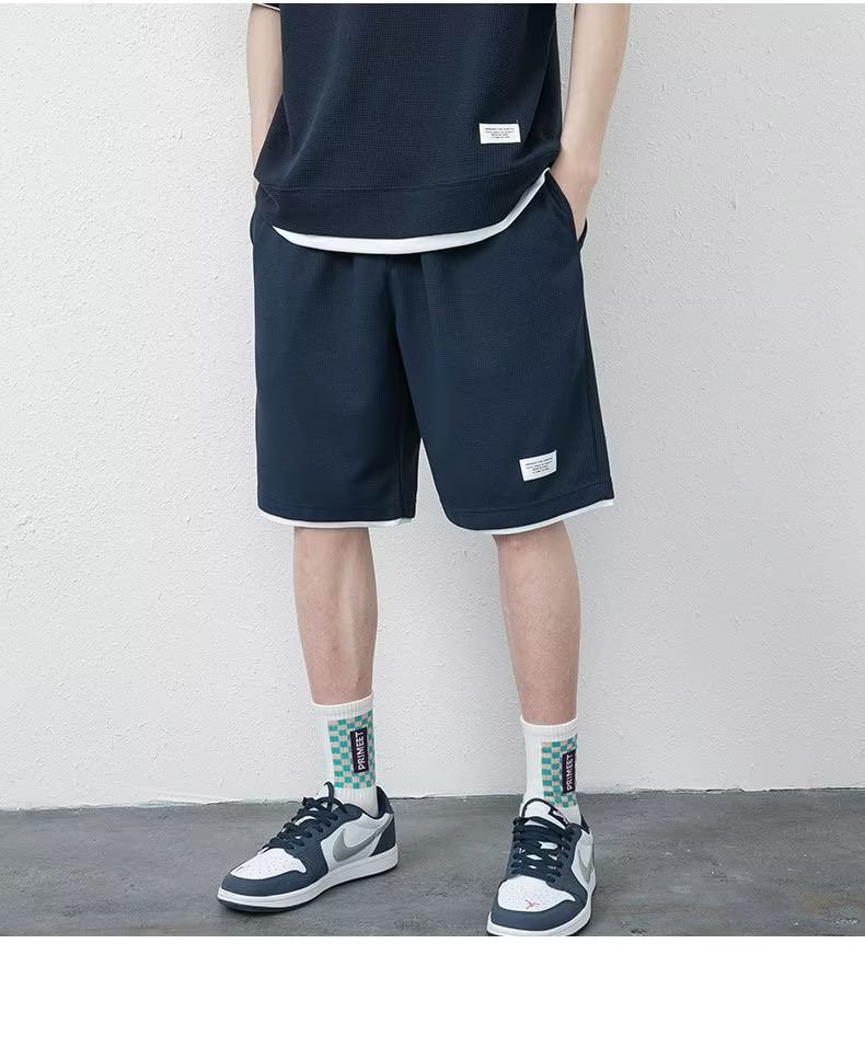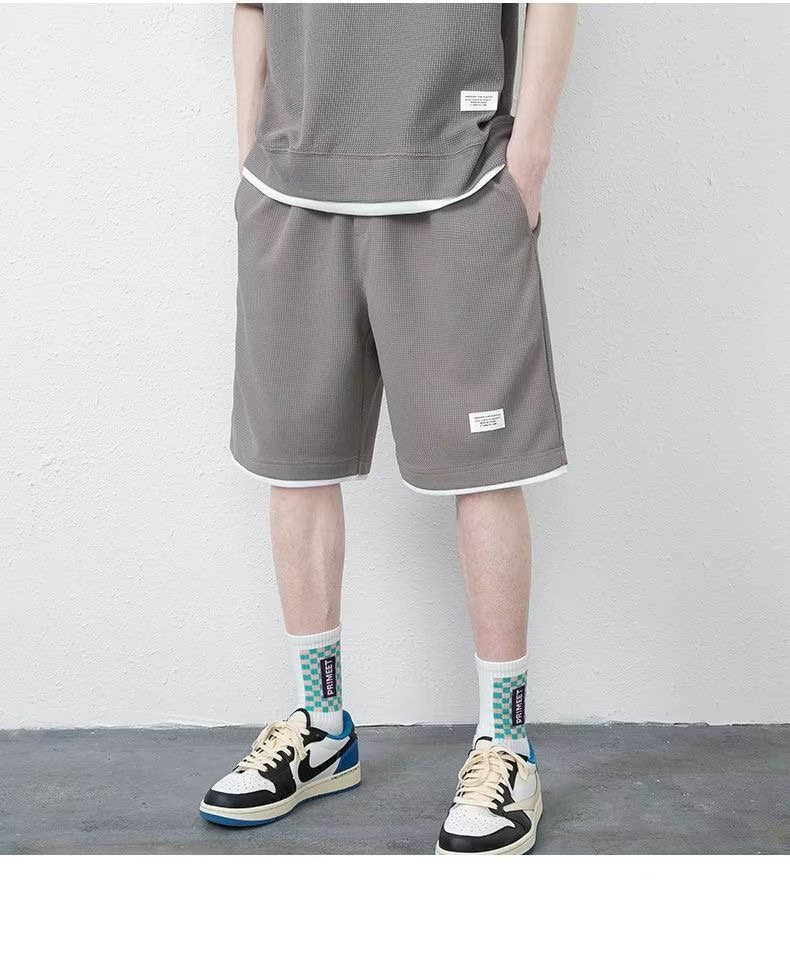 소스 제조업체 와플 스포츠 레저 세트 남성용 재고 반바지 도매 포트 바람 느슨한 가짜 2스토어 가기