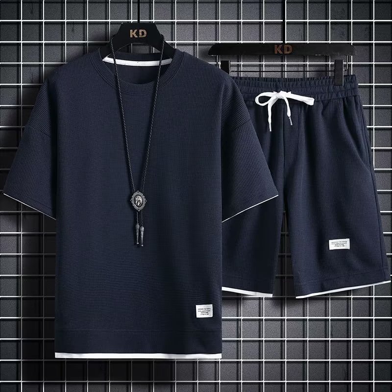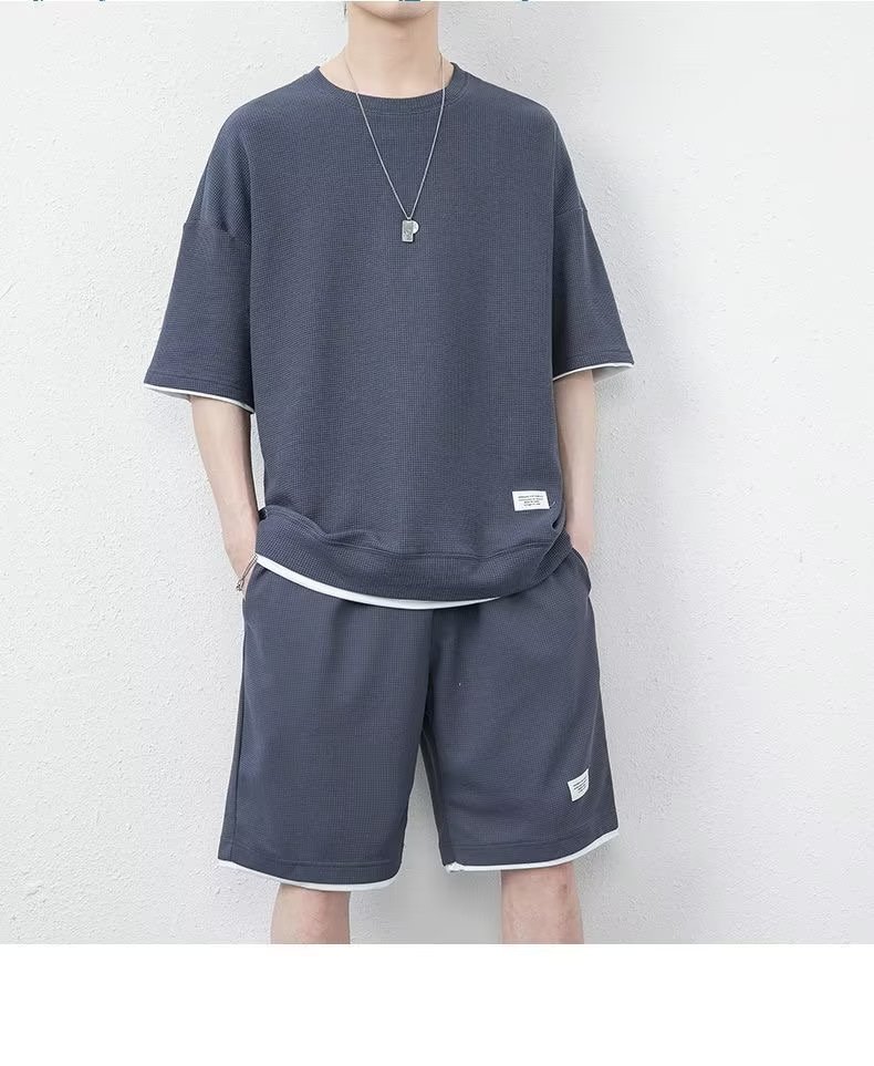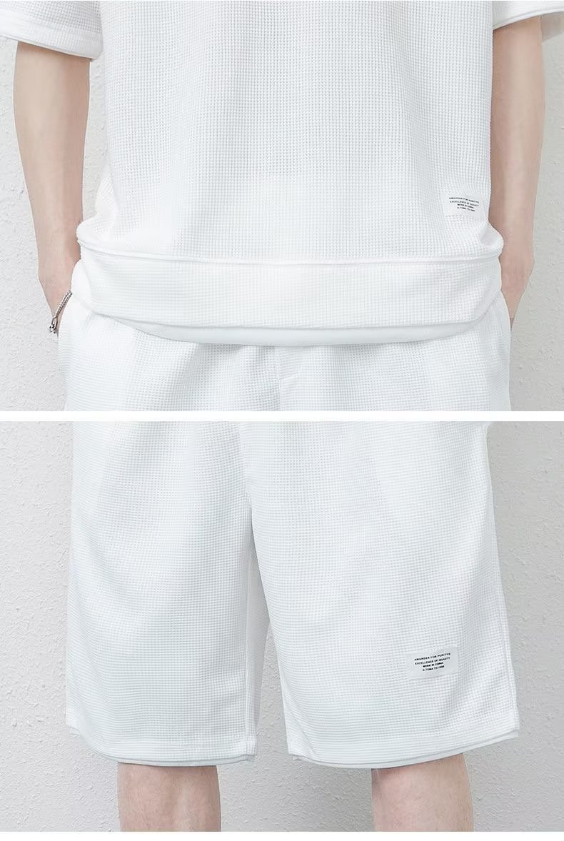 소스 제조업체 와플 스포츠 레저 세트 남성용 재고 반바지 도매 포트 바람 느슨한 가짜 2