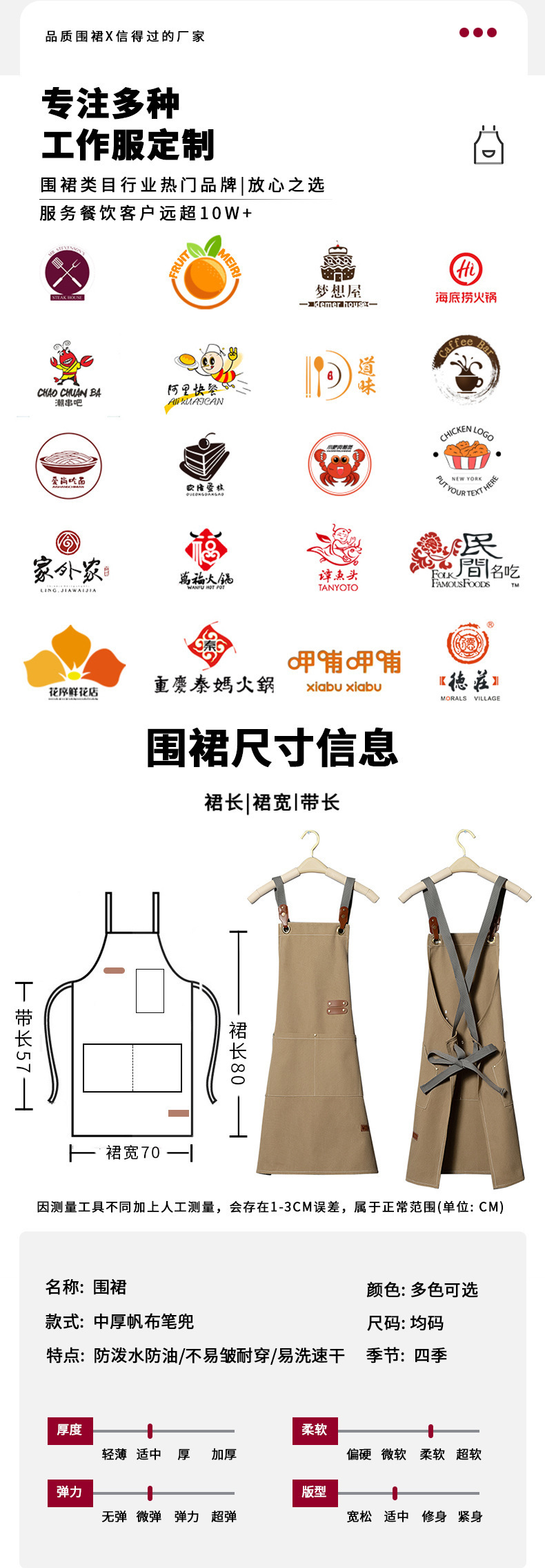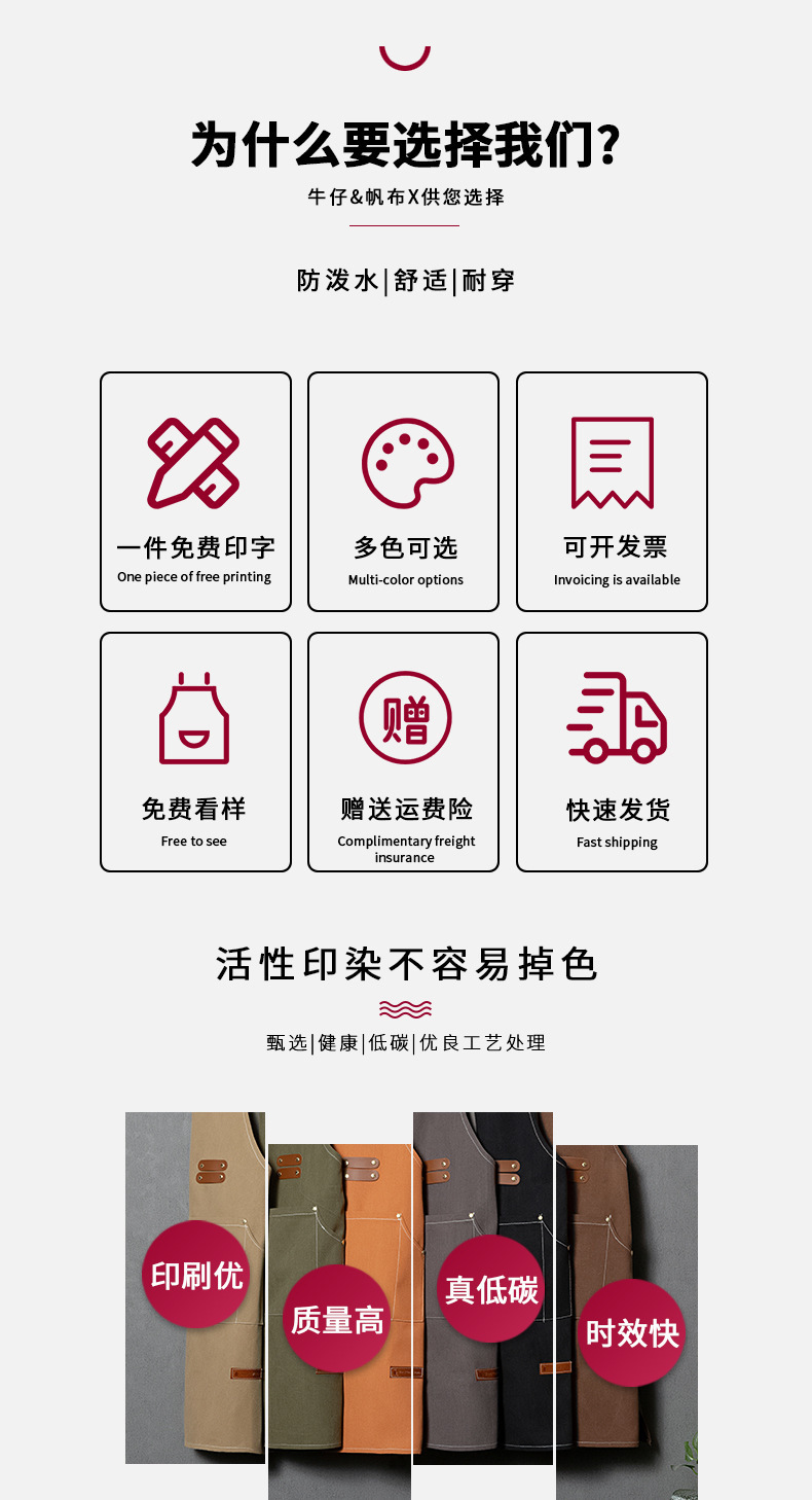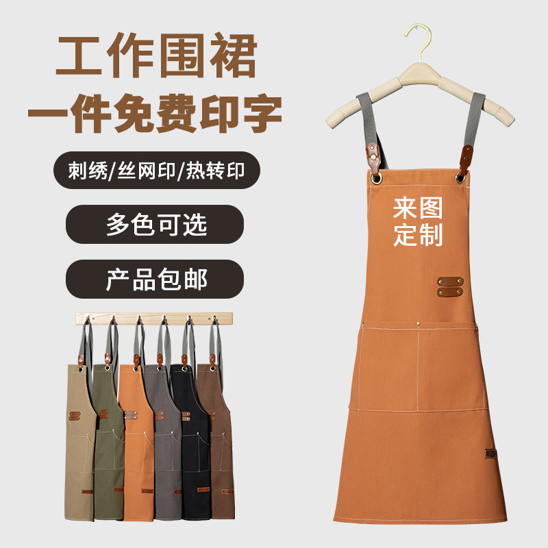 로고가 인쇄된 Amazon 여름 캔버스 맞춤형 앞치마 케이터링 바베큐 밀크티 매니큐어 커피숍 웨이터 앞치마