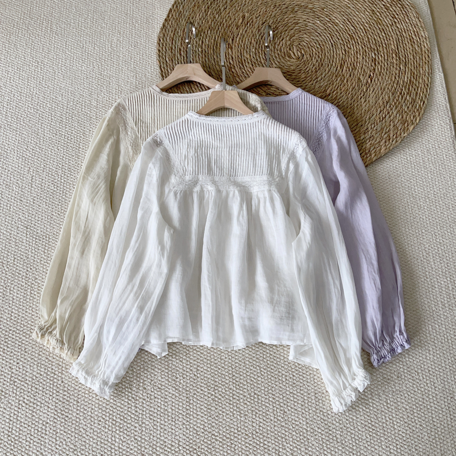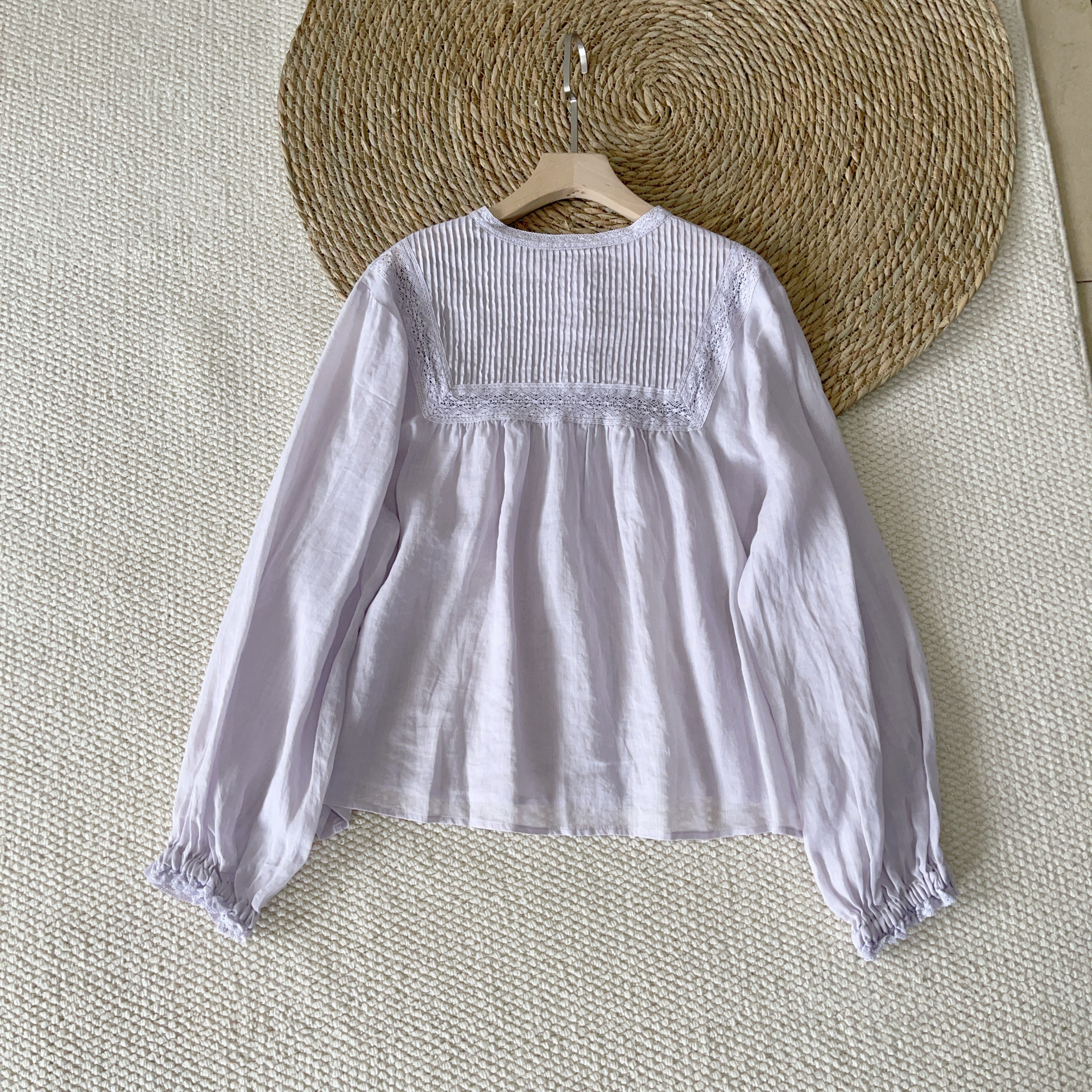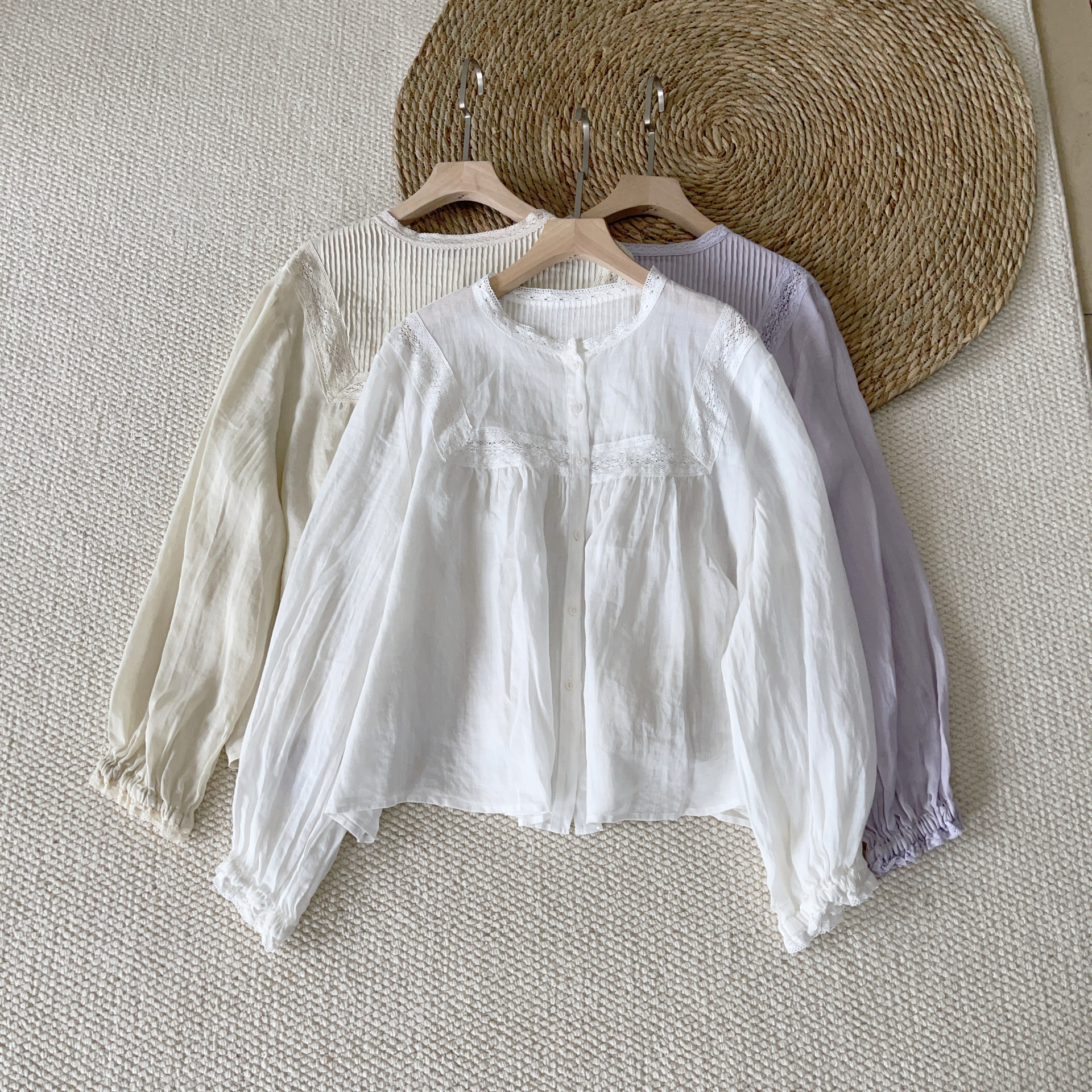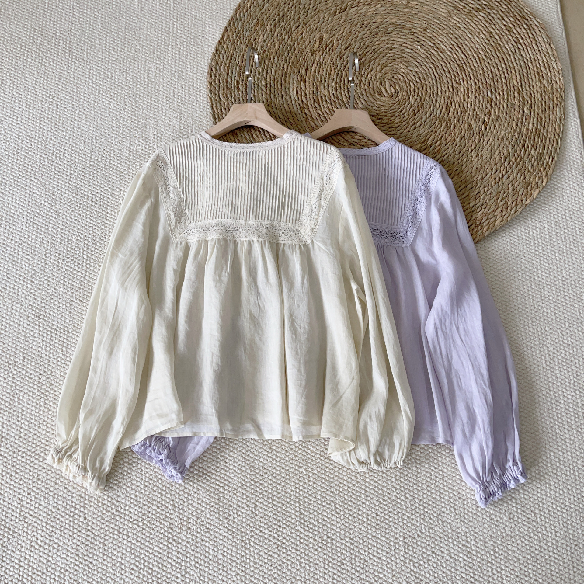 양면 ~ 달콤한 레이스 칼라 라미 셔츠 여자 25 뉴 루즈 에이지 감소 올매치 긴팔 셔츠스토어 가기
