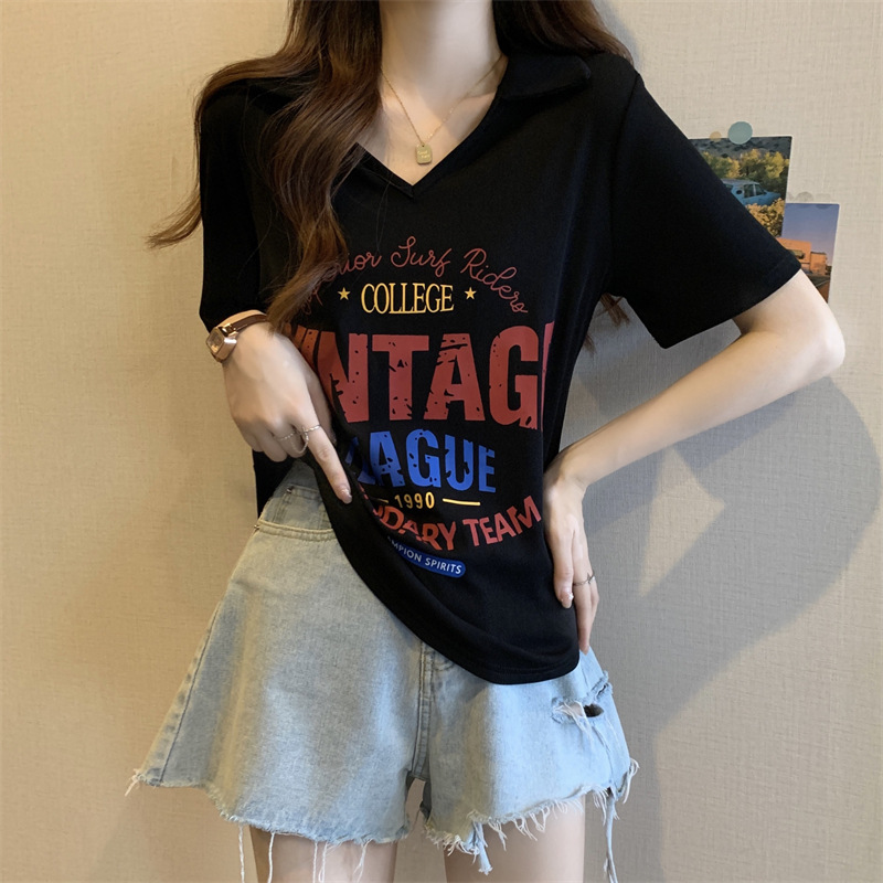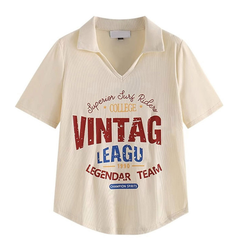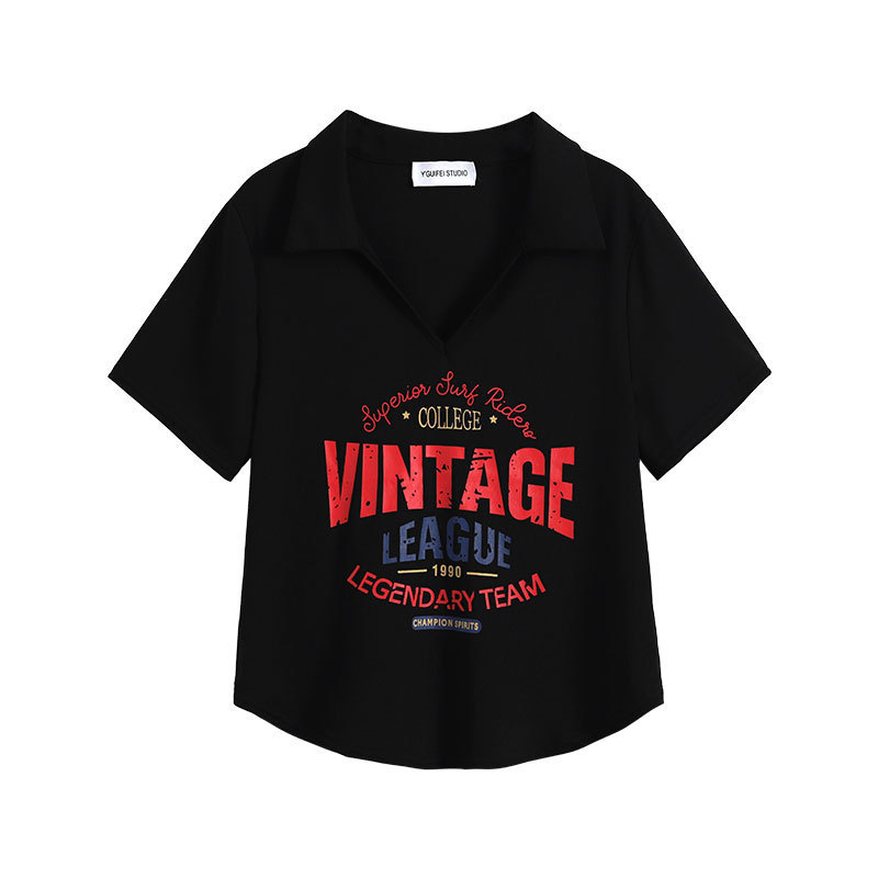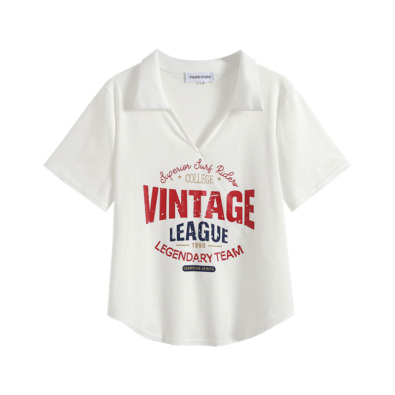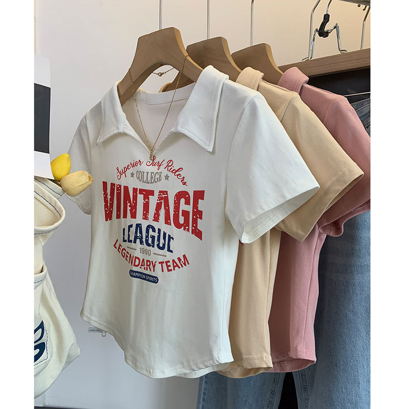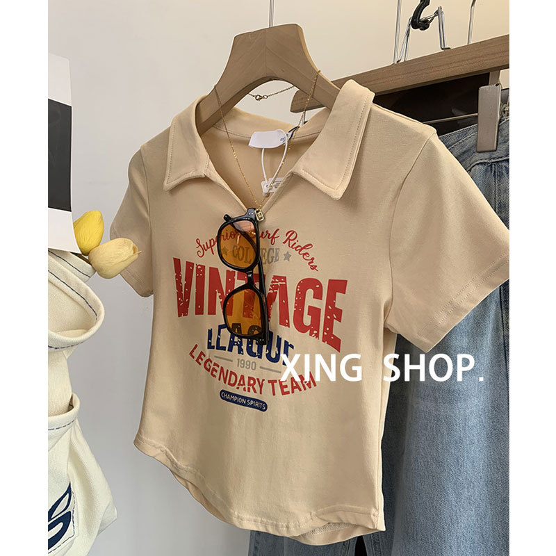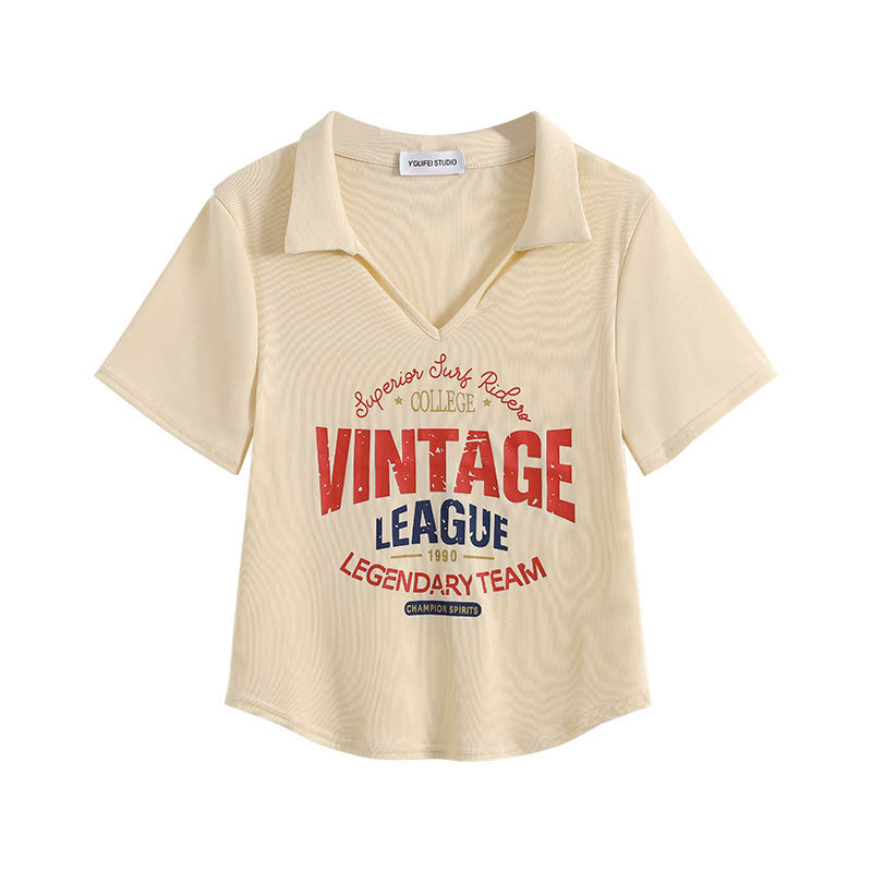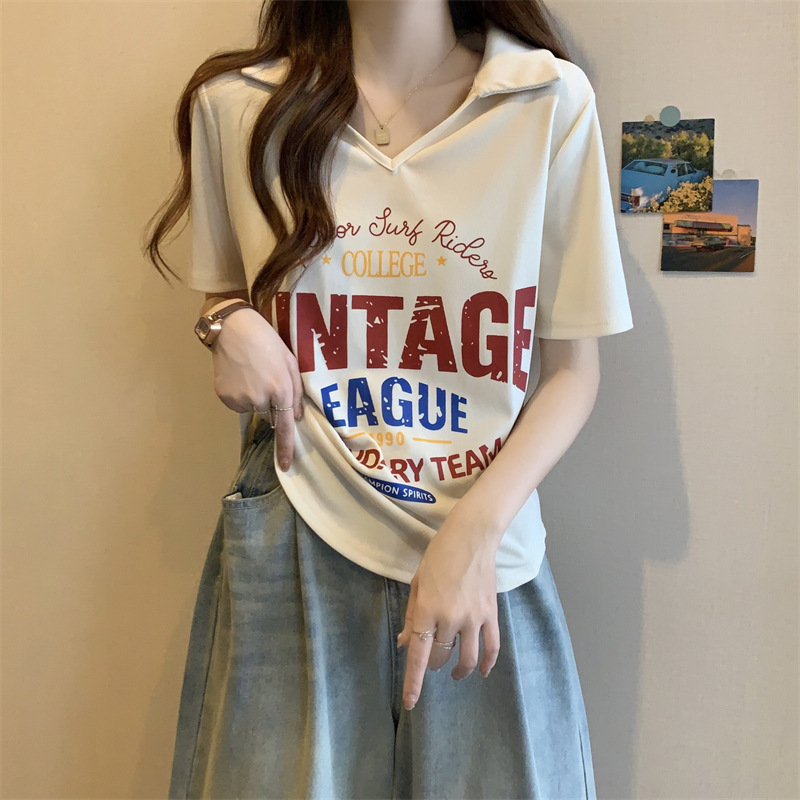 2025 여름 v 넥 오른쪽 어깨 반팔 티셔츠 여성 디자인 틈새 허리 슬림 짧은 폴로 셔츠 핫 소녀 탑스토어 가기