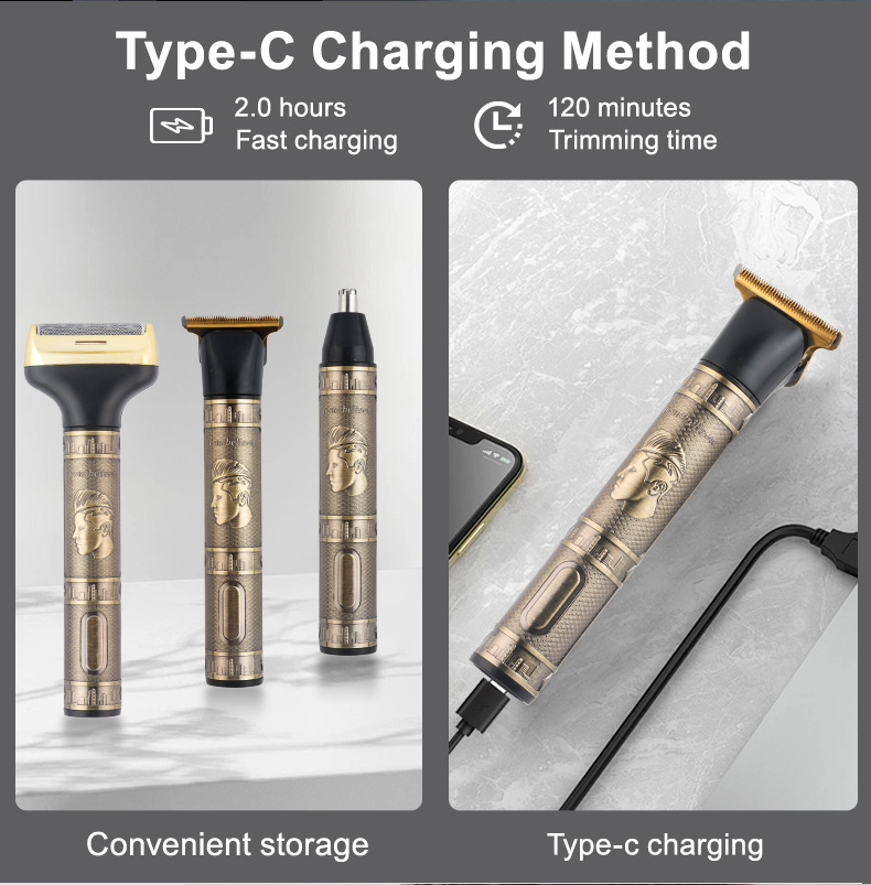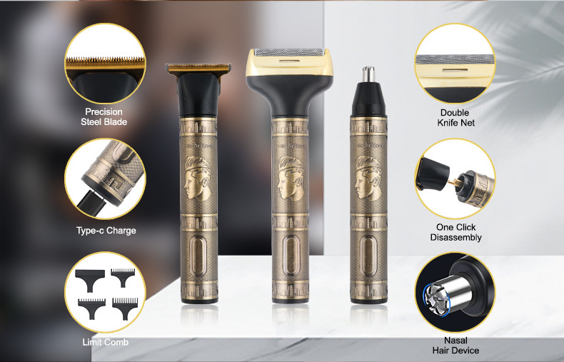국경 간 3-in-1 이발기 세트 왕복 면도기 코 헤어 트리밍 및 청소 다기능 이발기 새로운 스타일
