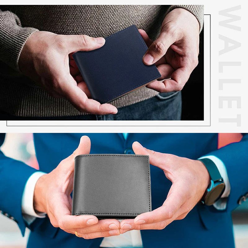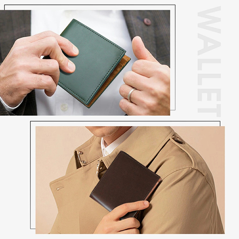 Amazon 남성용 짧은 비즈니스 지갑, 다기능 동전 보관함, 멀티 카드 슬롯, 천연 가죽 대비 색상 동전 지갑