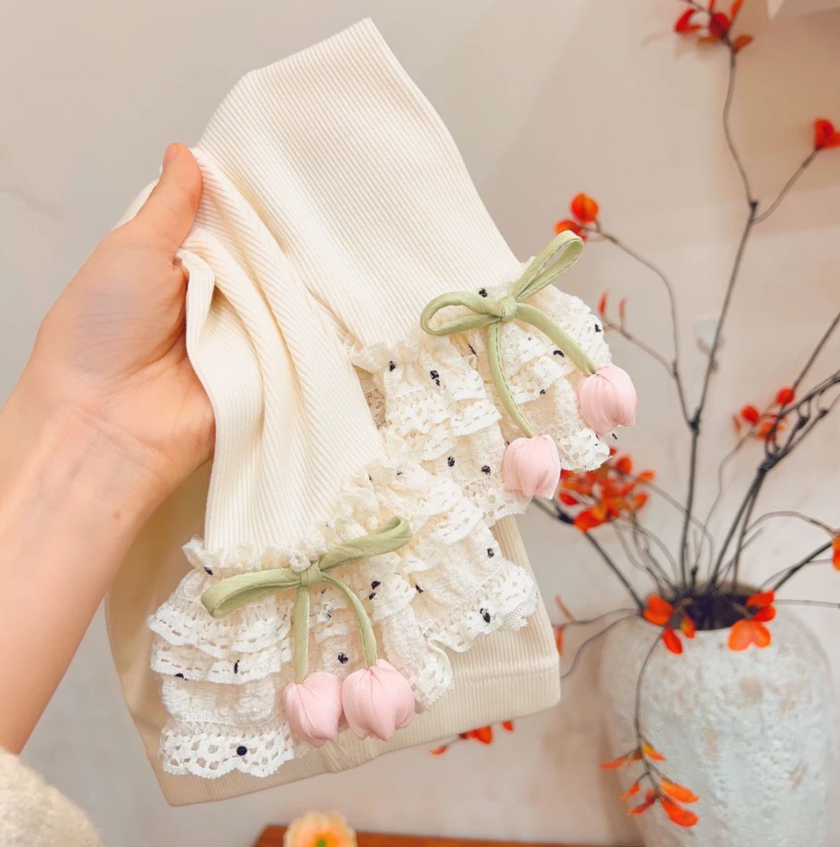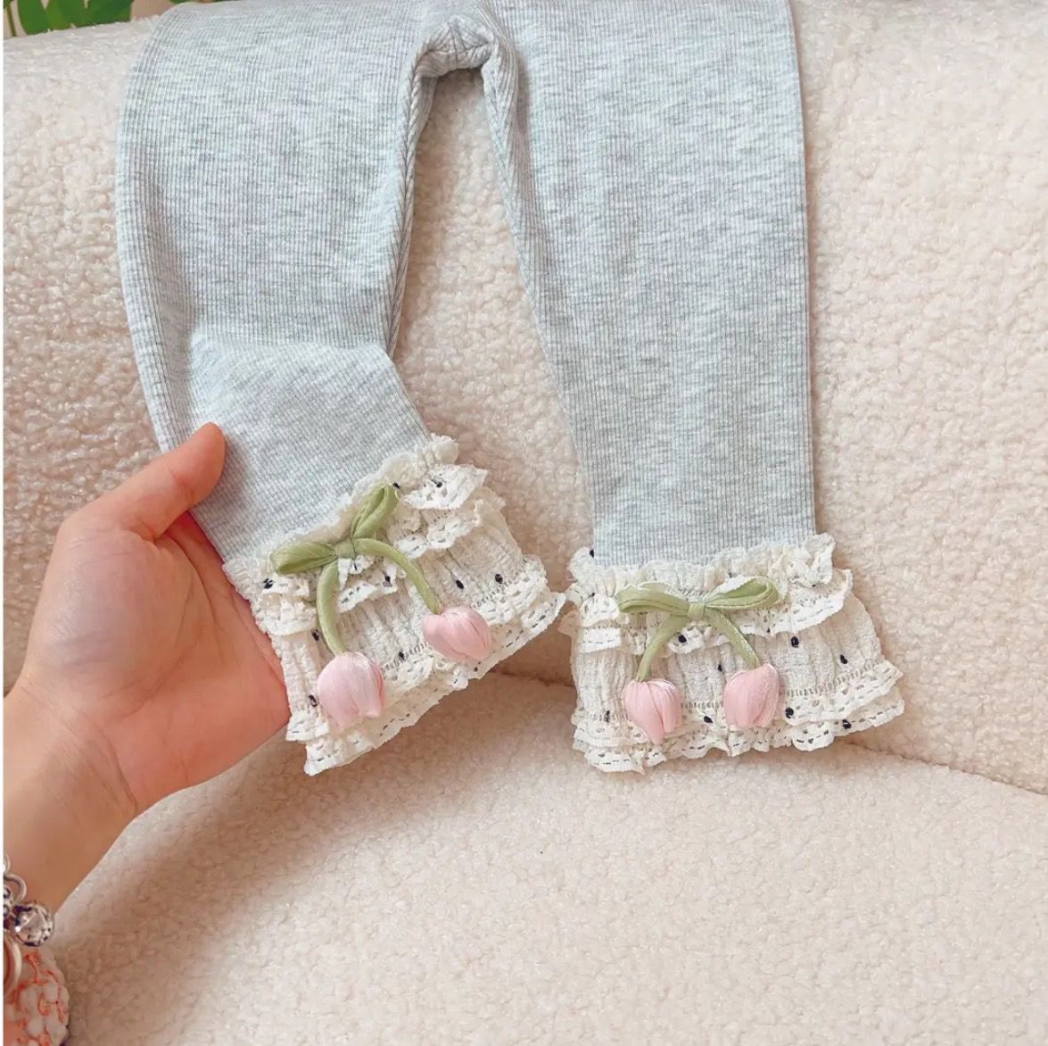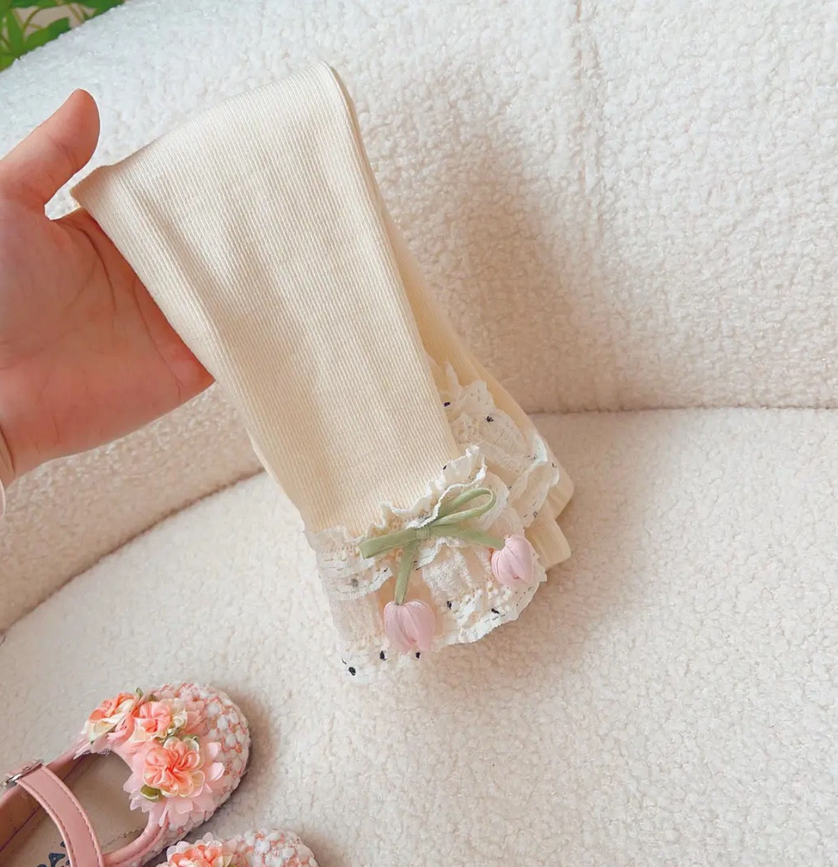 봄과 가을 소녀의 다목적 레깅스 어린이 귀여운 폴카 도트 레이스 튤립 겉옷 긴 바지 0069A076