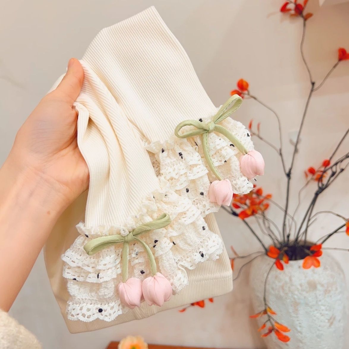 봄과 가을 소녀의 다목적 레깅스 어린이 귀여운 폴카 도트 레이스 튤립 겉옷 긴 바지 0069A076스토어 가기