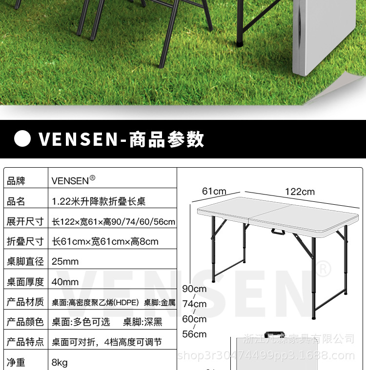 • 1.22m 흰색 나뭇결-접기-2단계 조절
