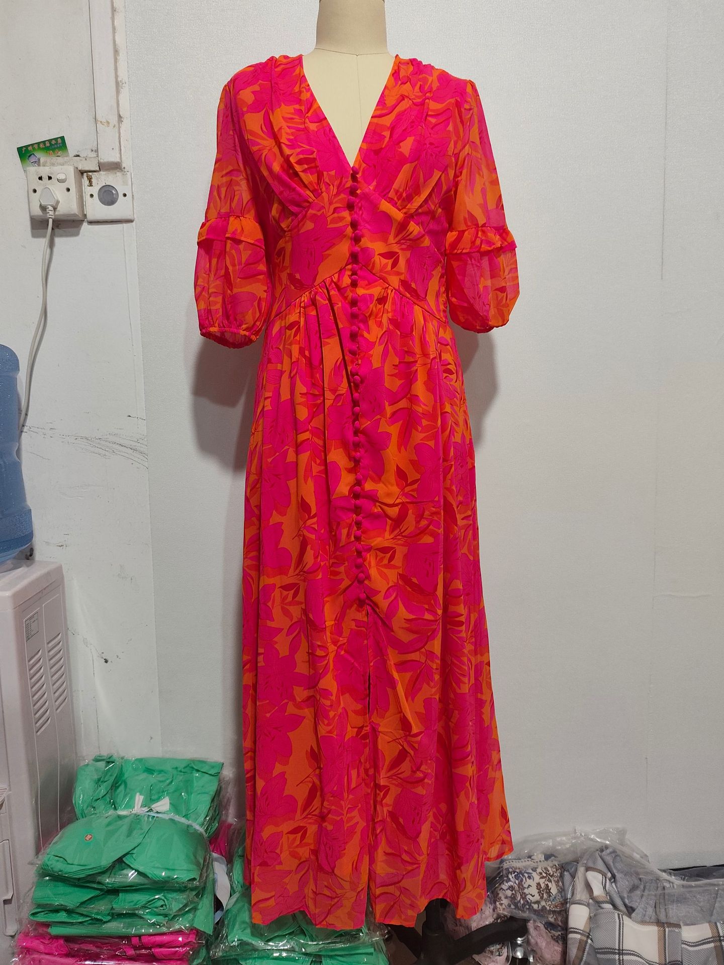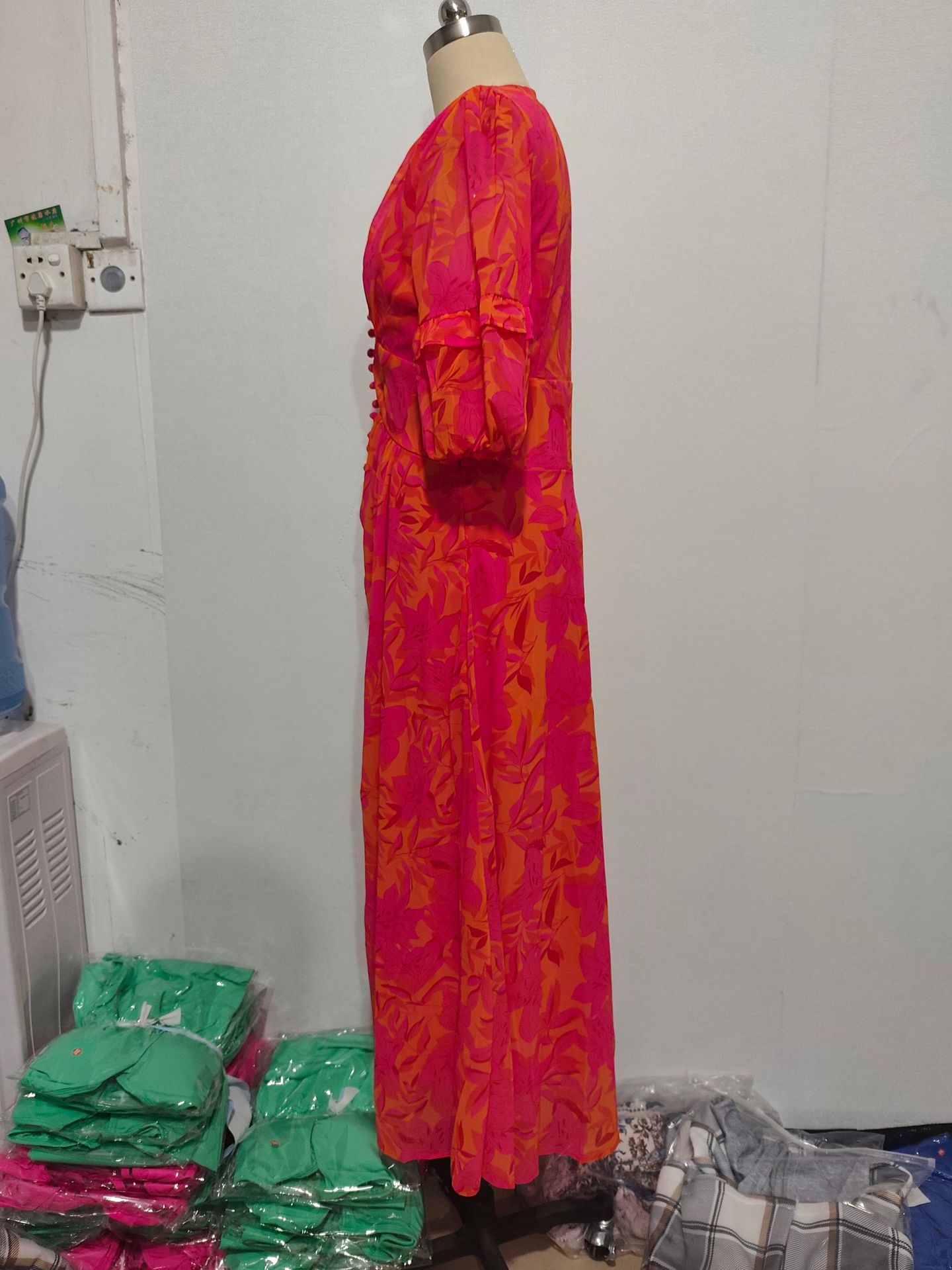 2025 대외 무역 인쇄 숙녀 섹시한 우아한 빛 성숙한 새로운 국경 전자 상거래 아마존 V-넥 긴 원피스스토어 가기