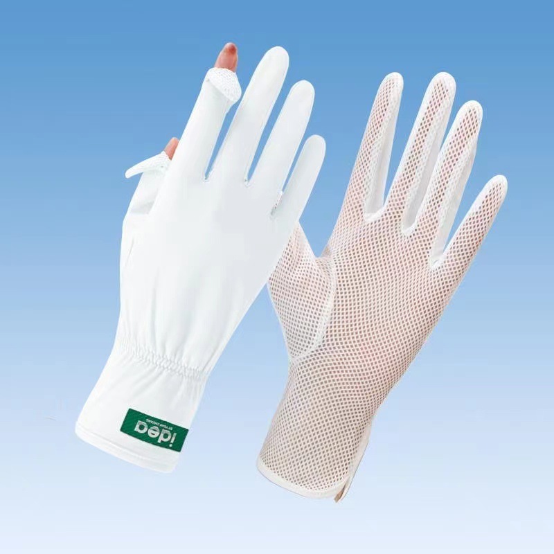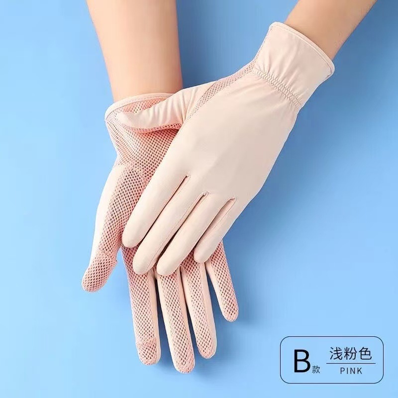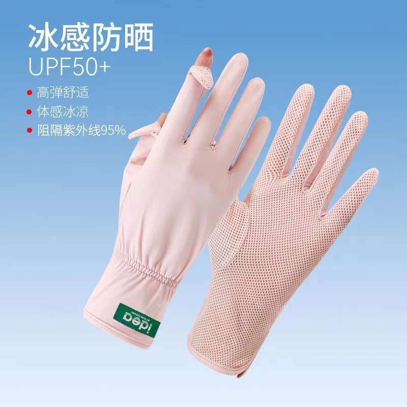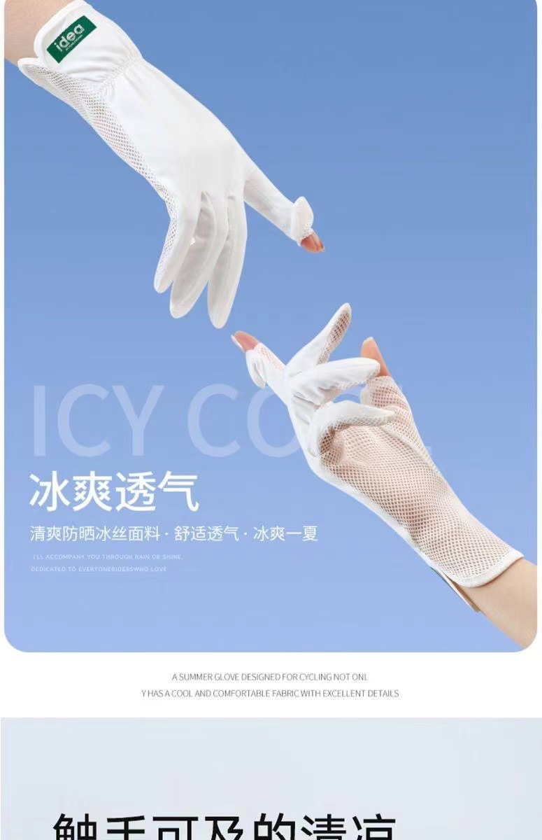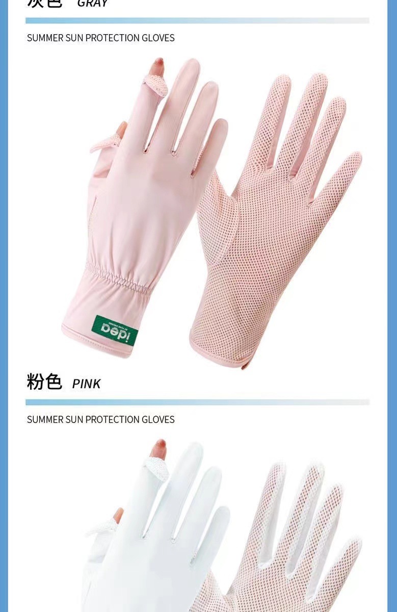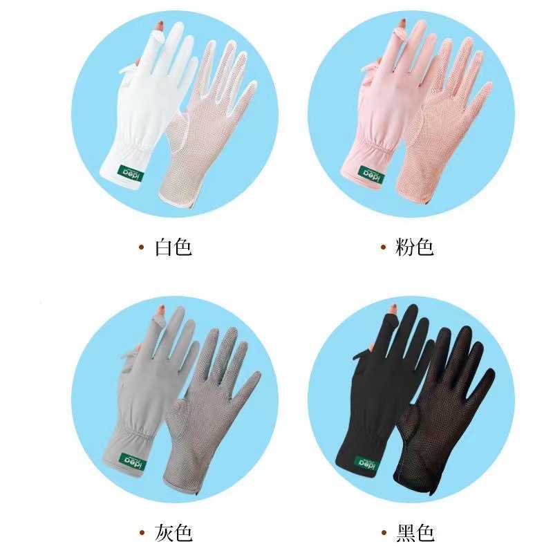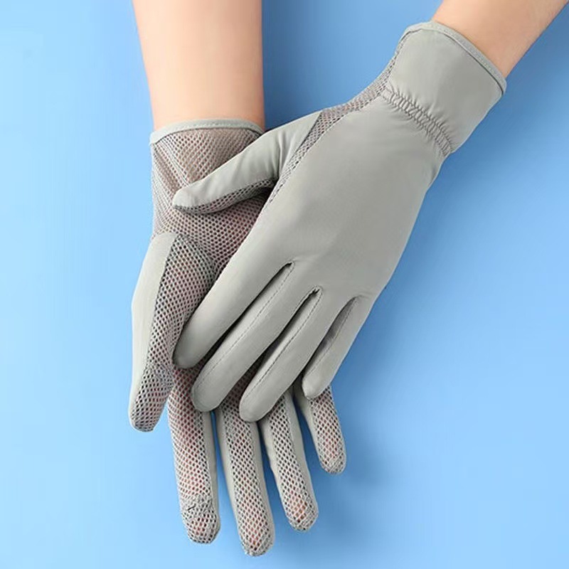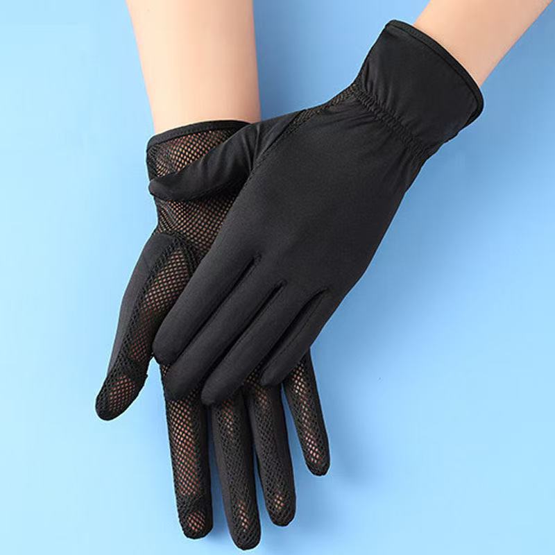 선스크린 소매 여성의 여름 얇은 얼음 실크 긴 누설 손가락 터치 스크린 장갑 야외 승마 UV 보호 팔 보호