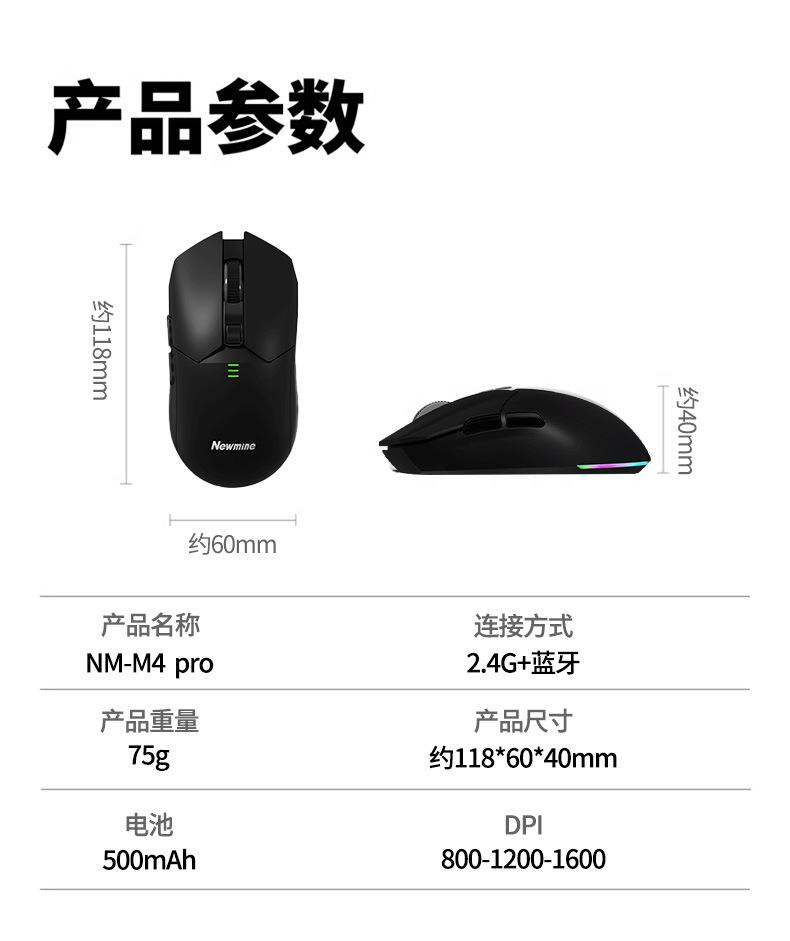 Newman Bluetooth 무선 마우스 M4 컴퓨터 노트북 RGB 발광 게임 e-스포츠 오피스 인체 공학에 적합
