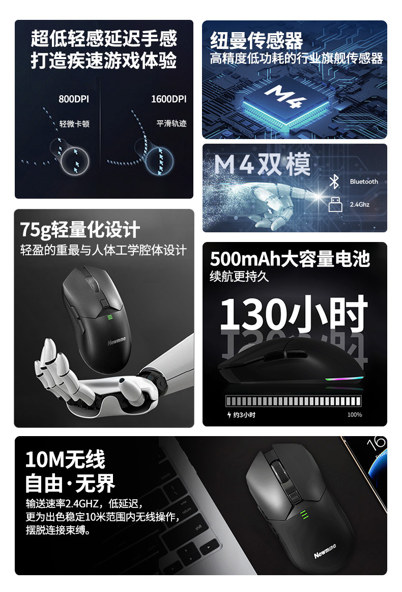 Newman Bluetooth 무선 마우스 M4 컴퓨터 노트북 RGB 발광 게임 e-스포츠 오피스 인체 공학에 적합스토어 가기