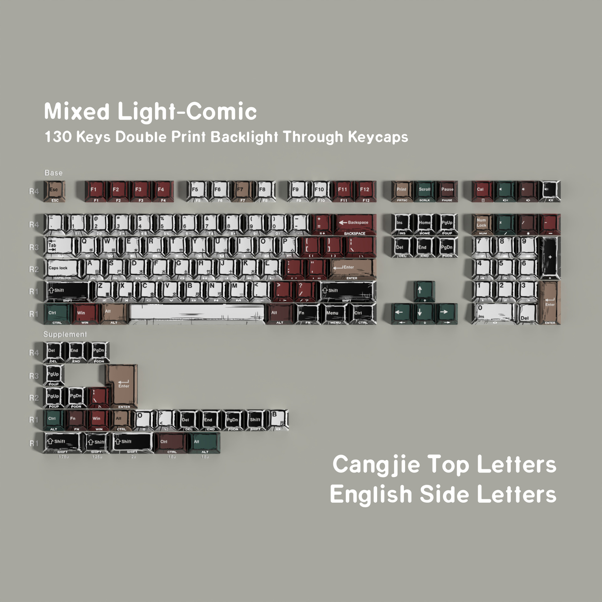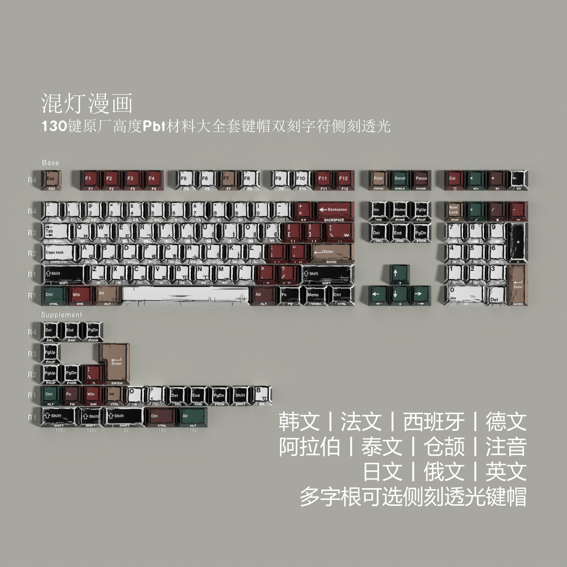 关于布局:所有侧刻字符均为常规布局,没有其他语种的字根,字根选择仅为正刻不透光热升华字符!