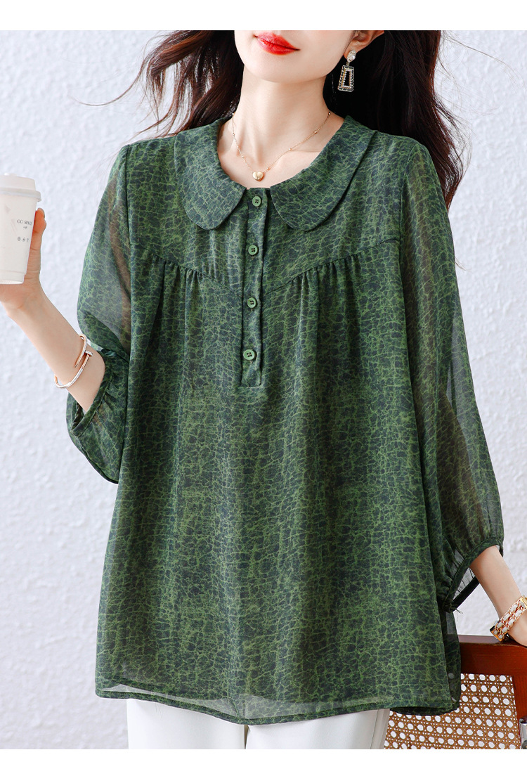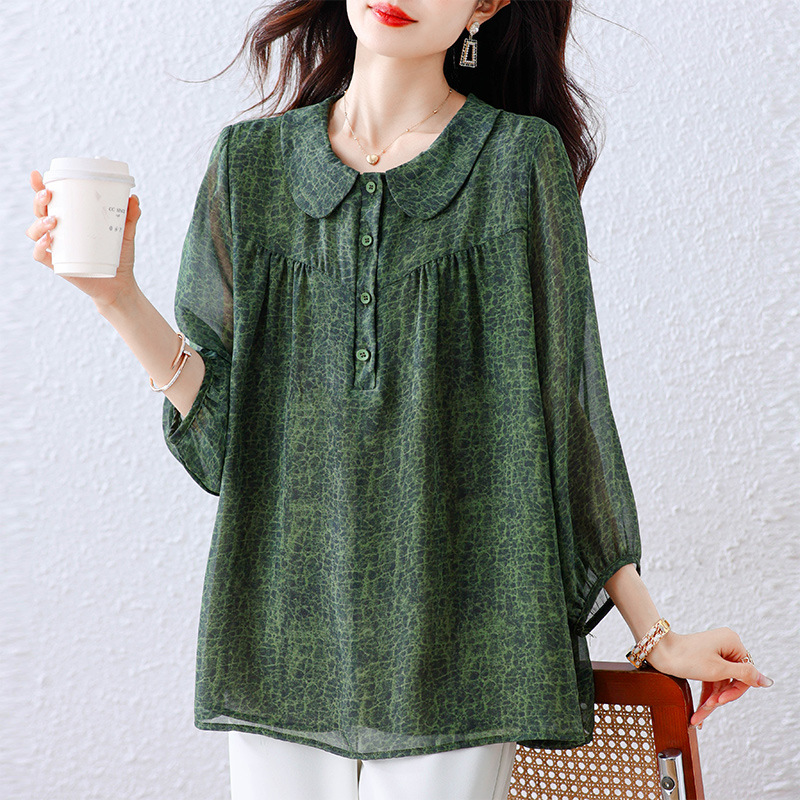 플러스 사이즈 여성 2025 봄 여름 새로운 패션 루즈 배 커버 탑 쉬폰 셔츠