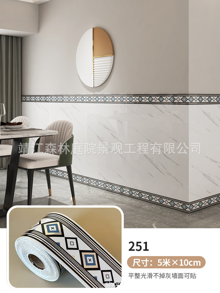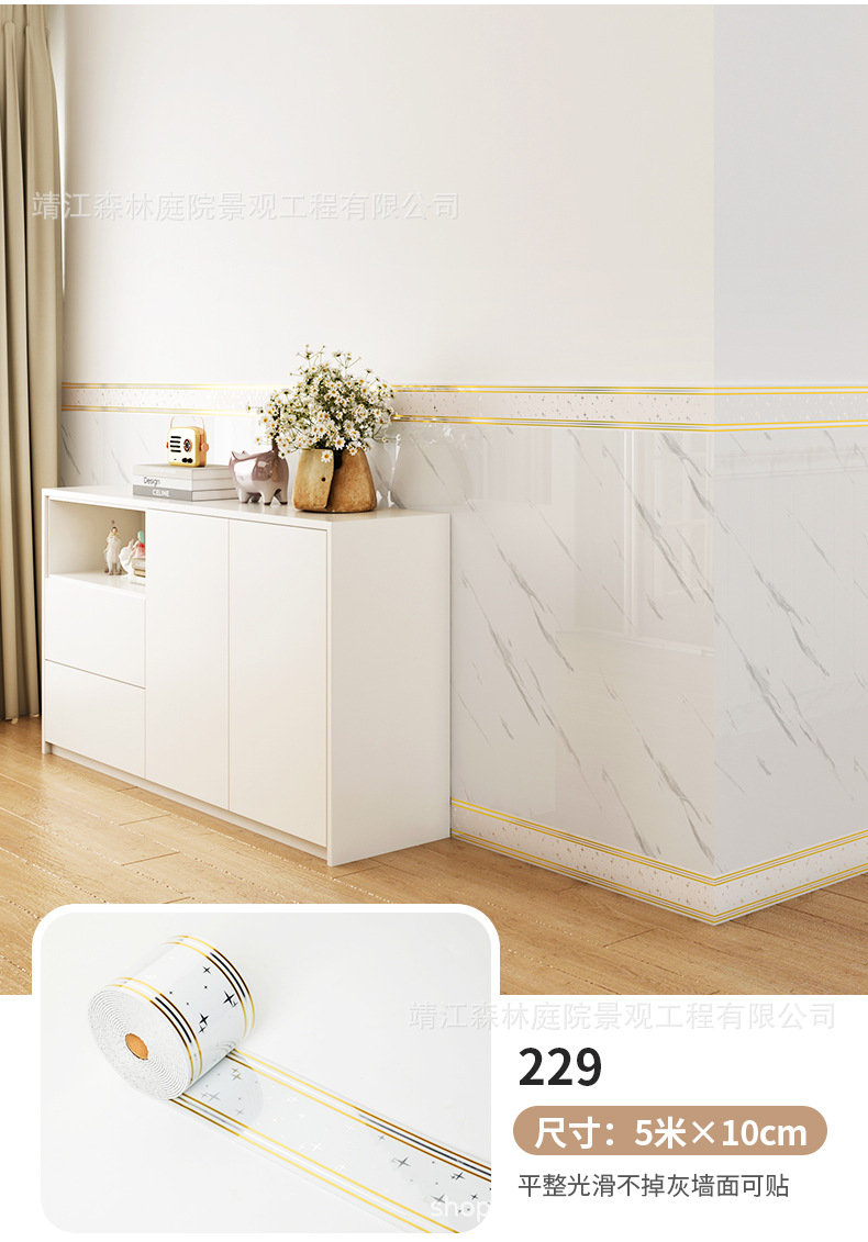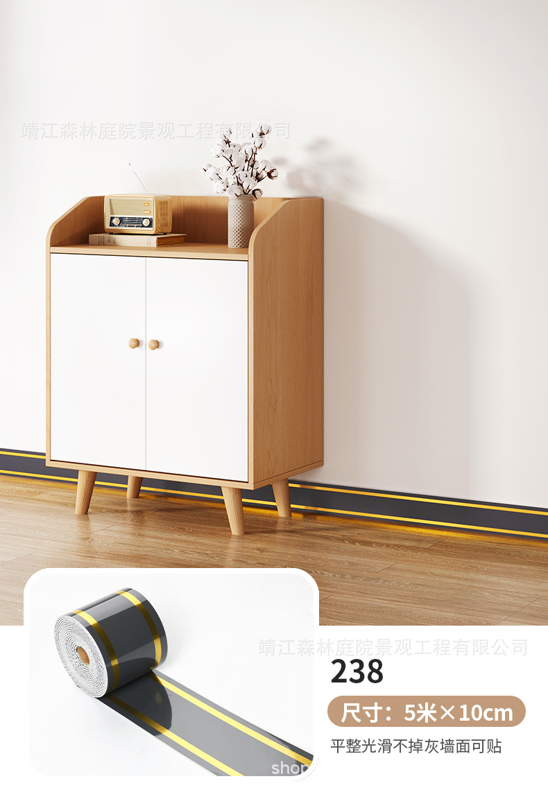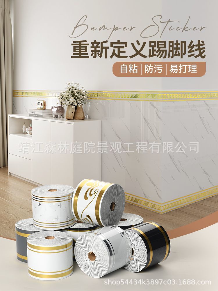 두꺼운 5m 롤 스타일 베이스보드 자체 접착 PVC 베이스보드 벽 스티커 방수 가장자리 보호 허리 라인 장식