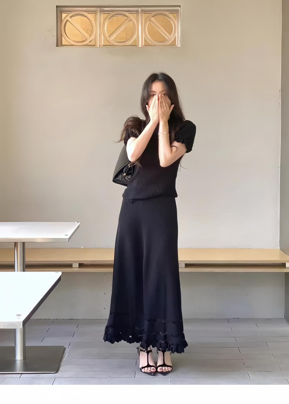 7528 여름 샤넬 스타일 세트 여성 하이 엔드 라이트 럭셔리 여성 왕실 자매 캐주얼 블랙 탑과 스커트 투피스 세트스토어 가기