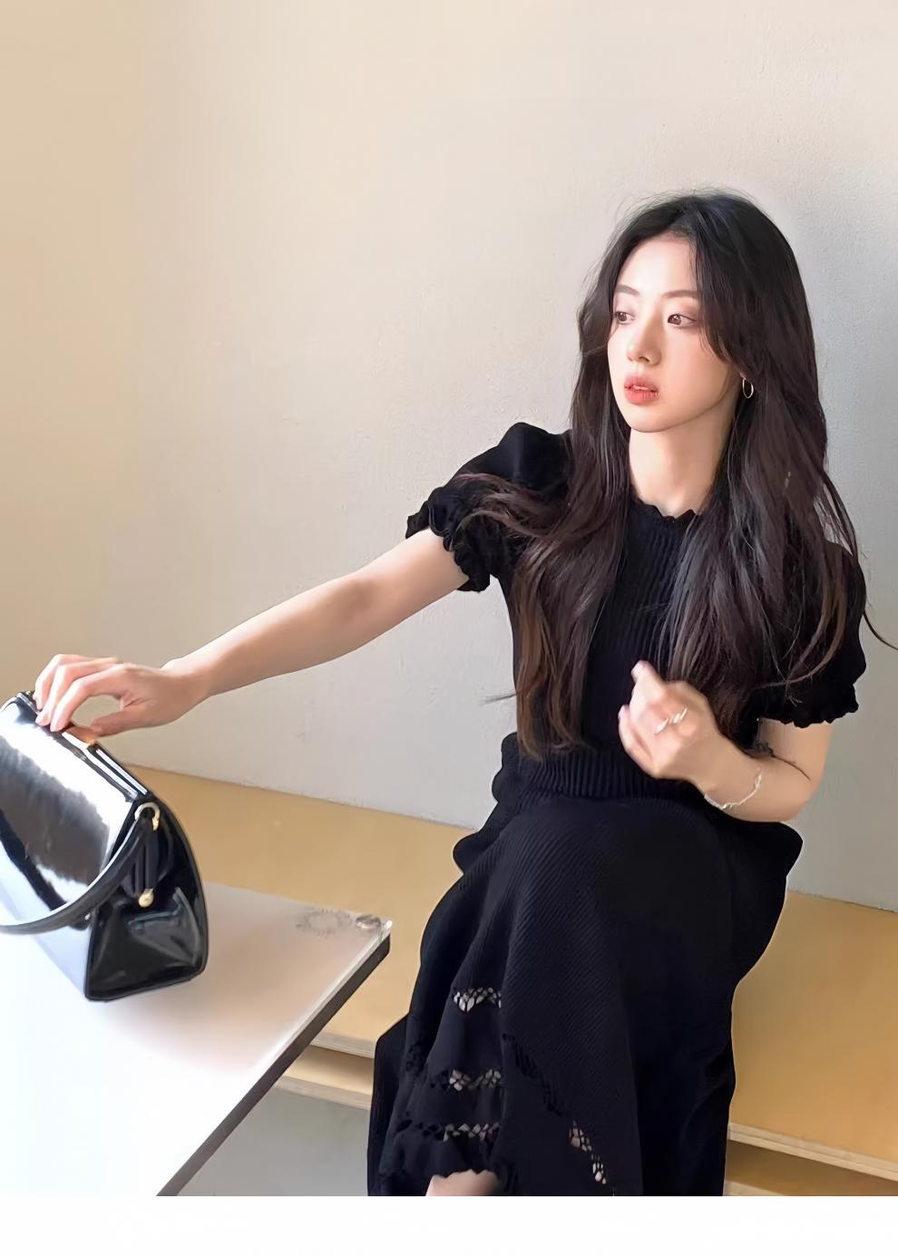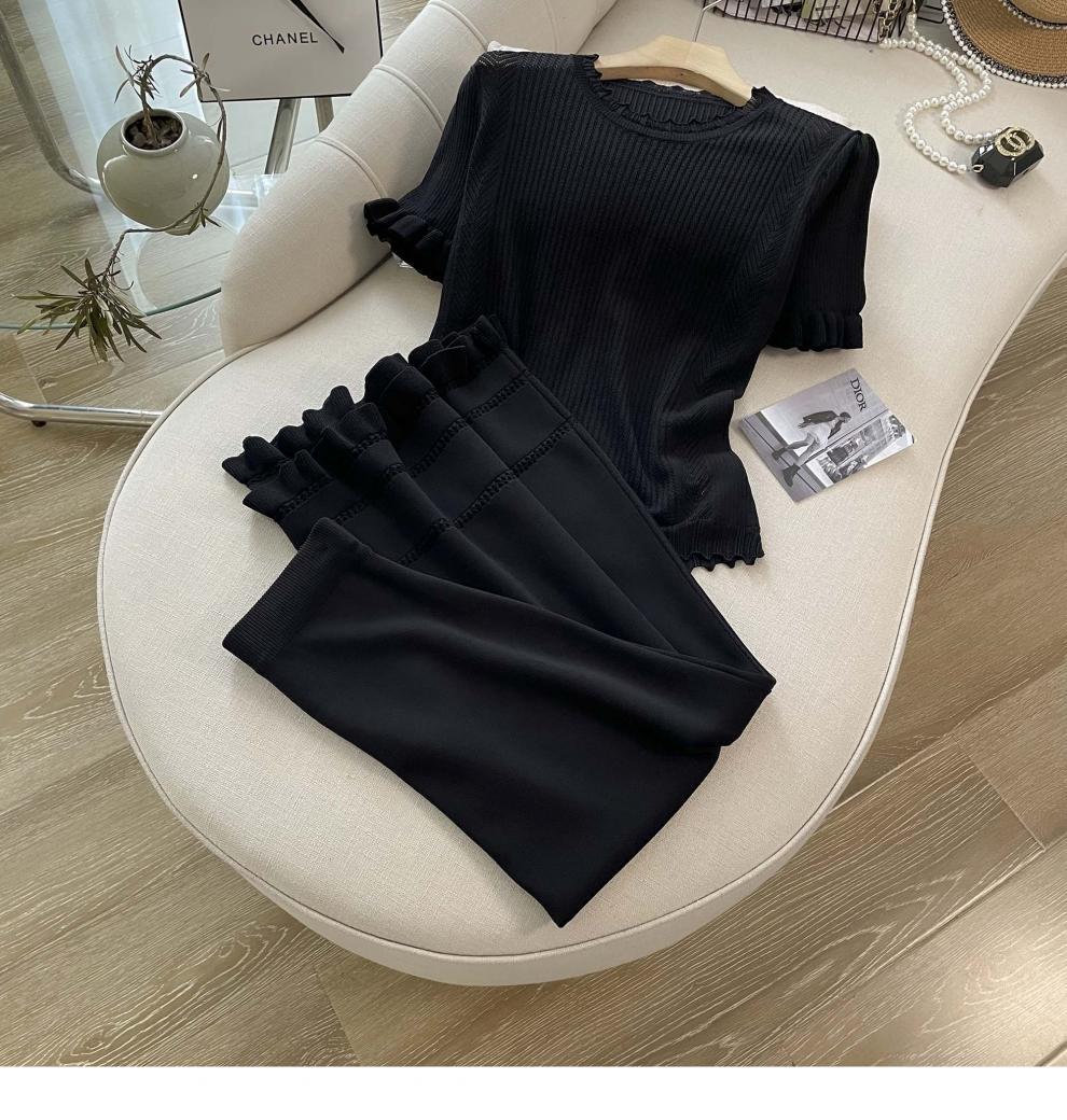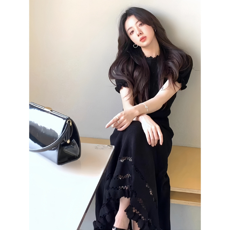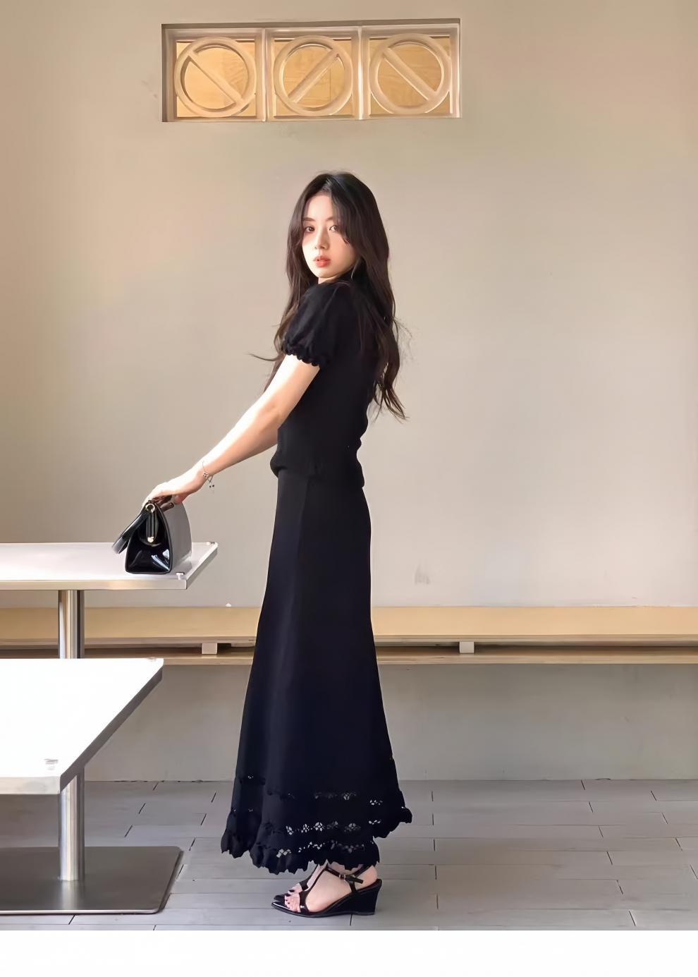 7528 여름 샤넬 스타일 세트 여성 하이 엔드 라이트 럭셔리 여성 왕실 자매 캐주얼 블랙 탑과 스커트 투피스 세트