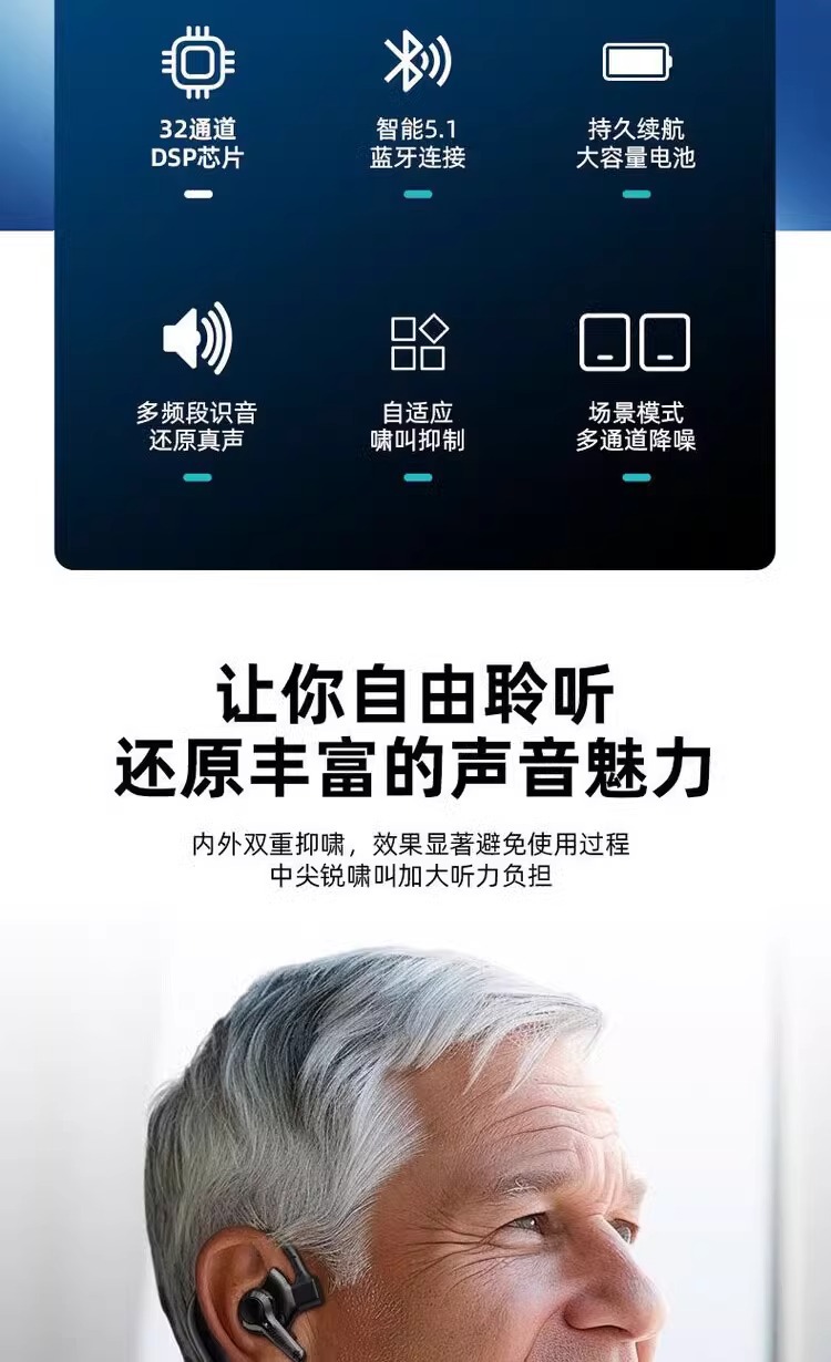 중노년성 청각 장애인을 위한 싱글 이어 블루투스 보조 청각 보조기, 특수 증폭 사운드 보조 청각 보조 헤드폰스토어 가기
