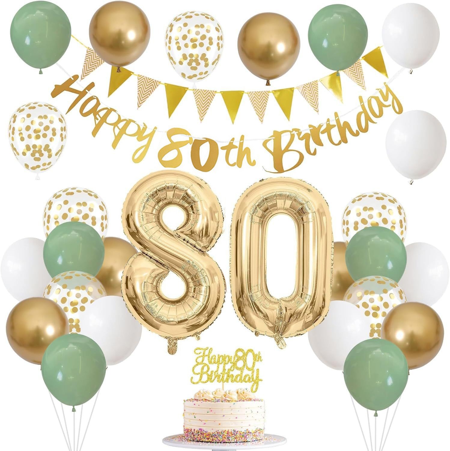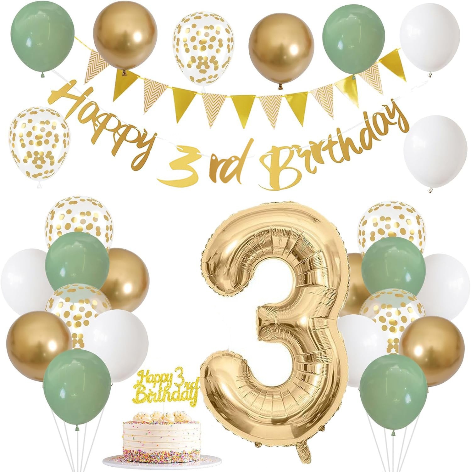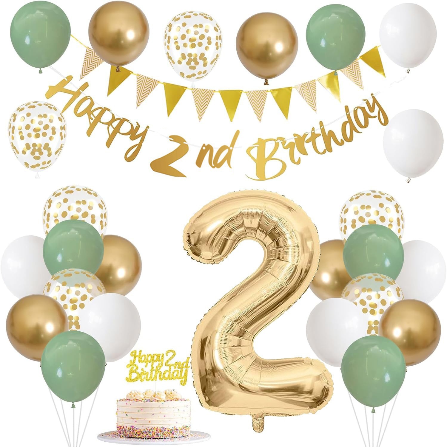 그린 골드 생일 파티 깃발 풍선 카드 디지털 호일 풍선 크로스보더 1주년 장식 세트