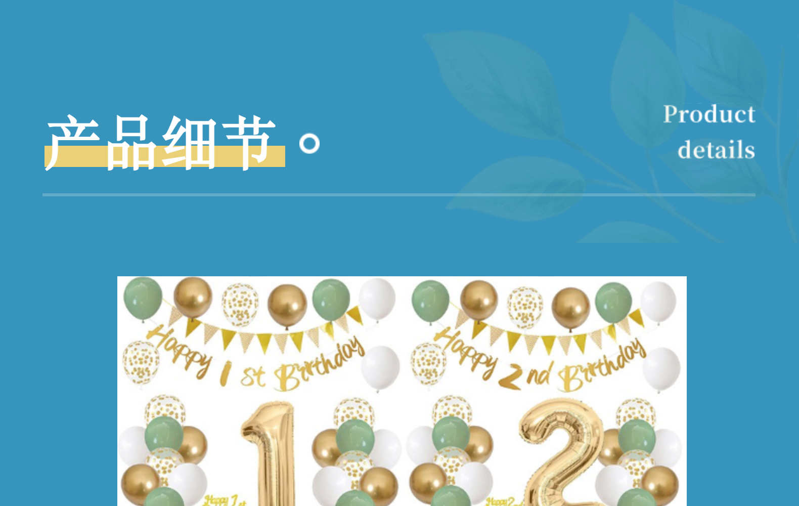 그린 골드 생일 파티 깃발 풍선 카드 디지털 호일 풍선 크로스보더 1주년 장식 세트스토어 가기