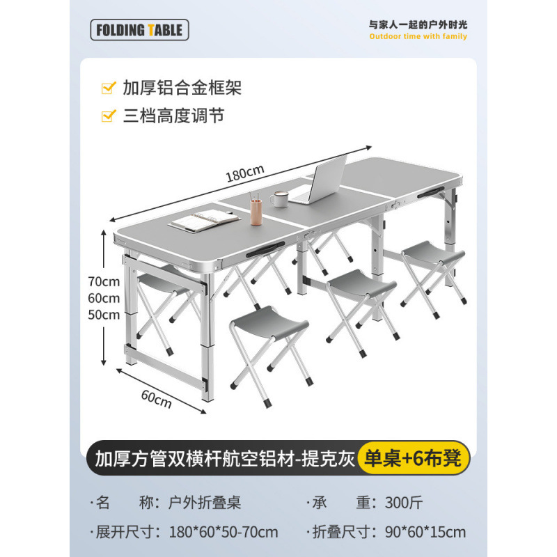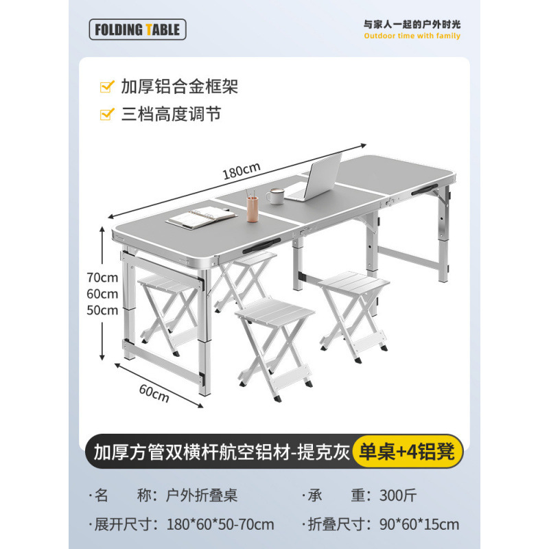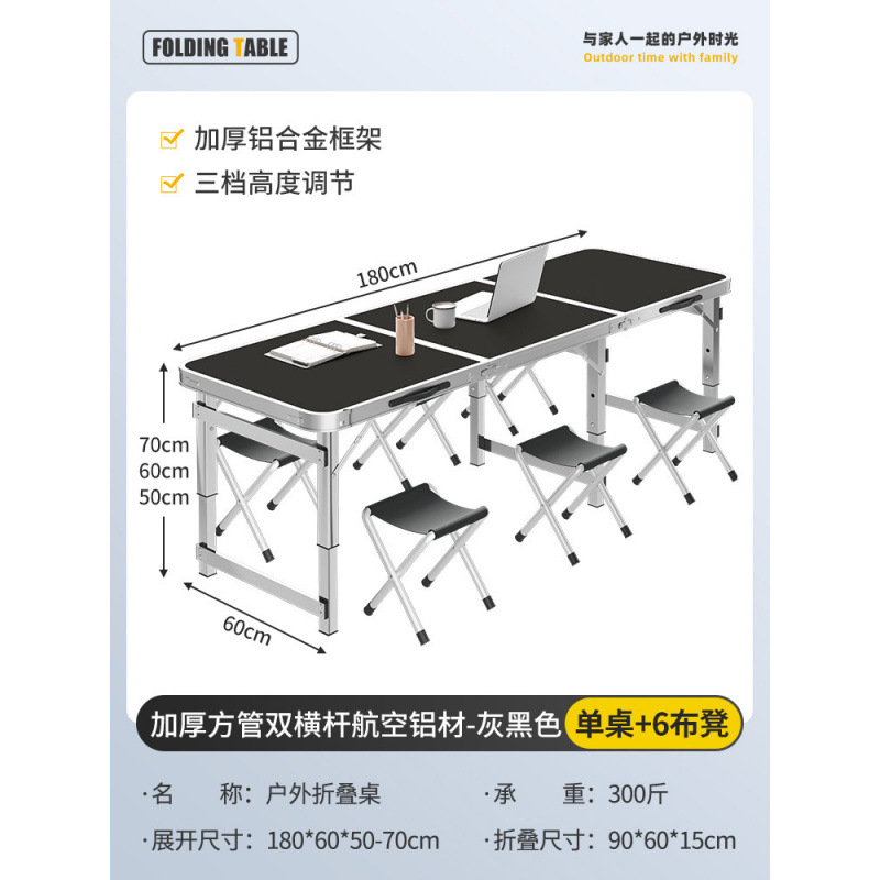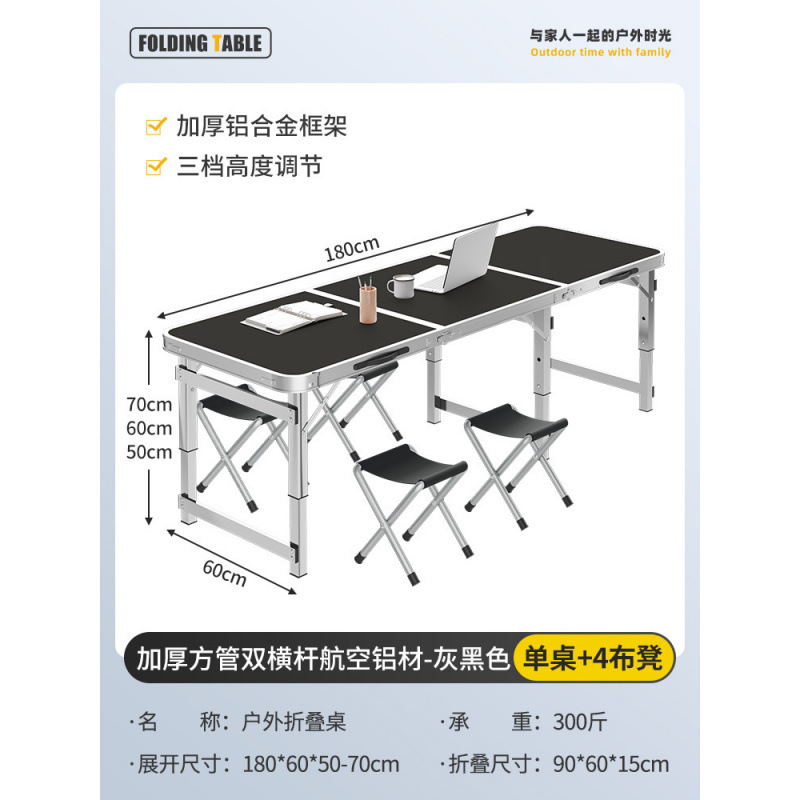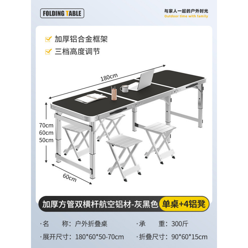 • [두꺼운 사각 튜브 이중 크로스바 항공 알루미늄] 180cm 회색 검정색 + 알루미늄 스툴 4개 설치 불필요★