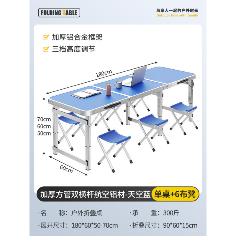 • [두꺼운 사각 튜브 이중 크로스바 항공 알루미늄] 180cm 하늘색 + 알루미늄 스툴 4개 설치 불필요★