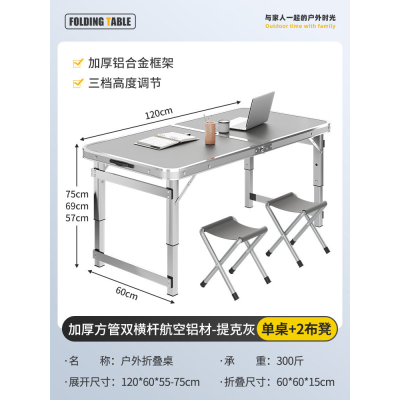 • [두꺼운 사각 튜브 이중 크로스바 항공 알루미늄] 120cm 회색 검정색 + 알루미늄 스툴 2개 설치 불필요★