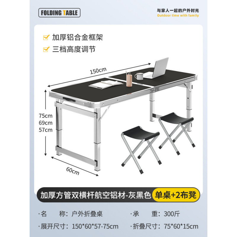 • [두꺼운 사각형 튜브 이중 크로스바 항공 알루미늄] 150cm 회색 검정색 + 알루미늄 스툴 4개 설치 필요 없음★