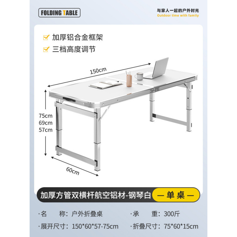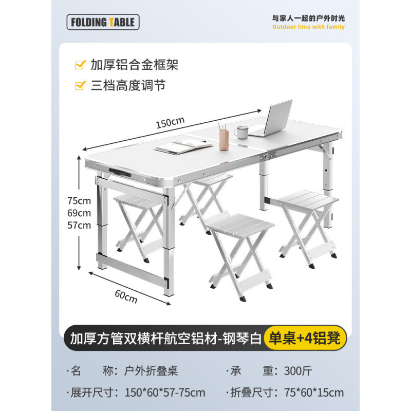 • [두꺼운 사각 튜브 이중 크로스바 항공 알루미늄] 150cm 피아노 화이트 + 알루미늄 스툴 4개 설치 불필요★