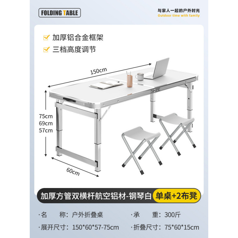 • [두꺼운 사각 튜브 이중 크로스바 항공 알루미늄] 150cm 피아노 화이트 + 알루미늄 스툴 2개 설치 불필요★