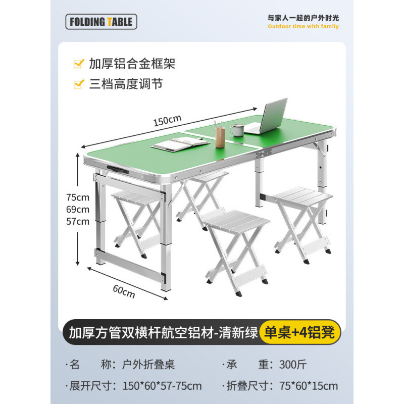• [두꺼운 사각 튜브 이중 크로스바 항공 알루미늄] 150cm 신록 + 알루미늄 스툴 4개 설치 불필요★