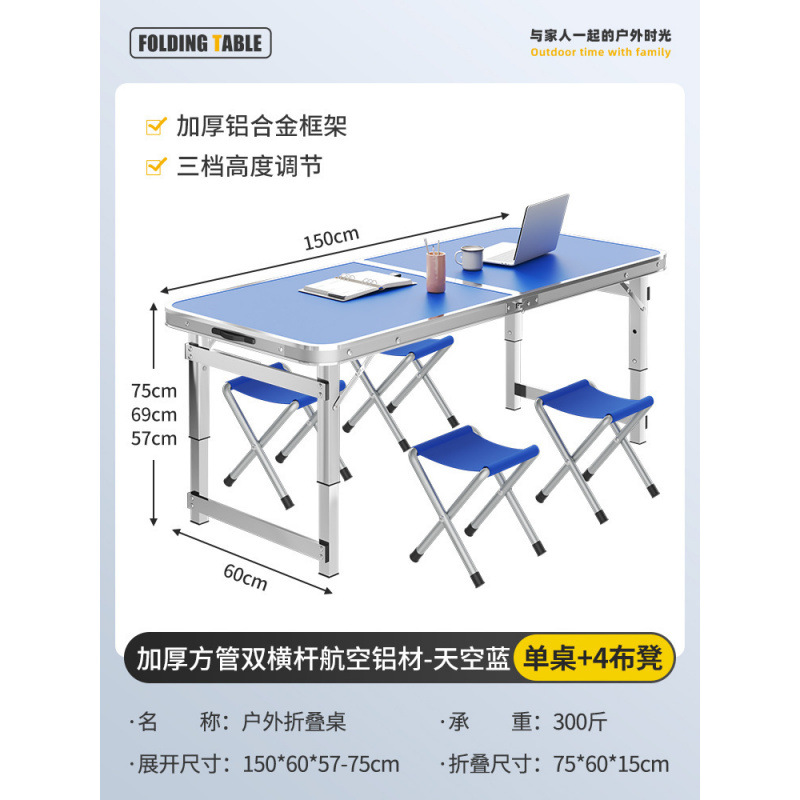 • [두꺼운 사각 튜브 이중 크로스바 항공 알루미늄] 150cm 하늘색 + 알루미늄 스툴 4개 설치 불필요★