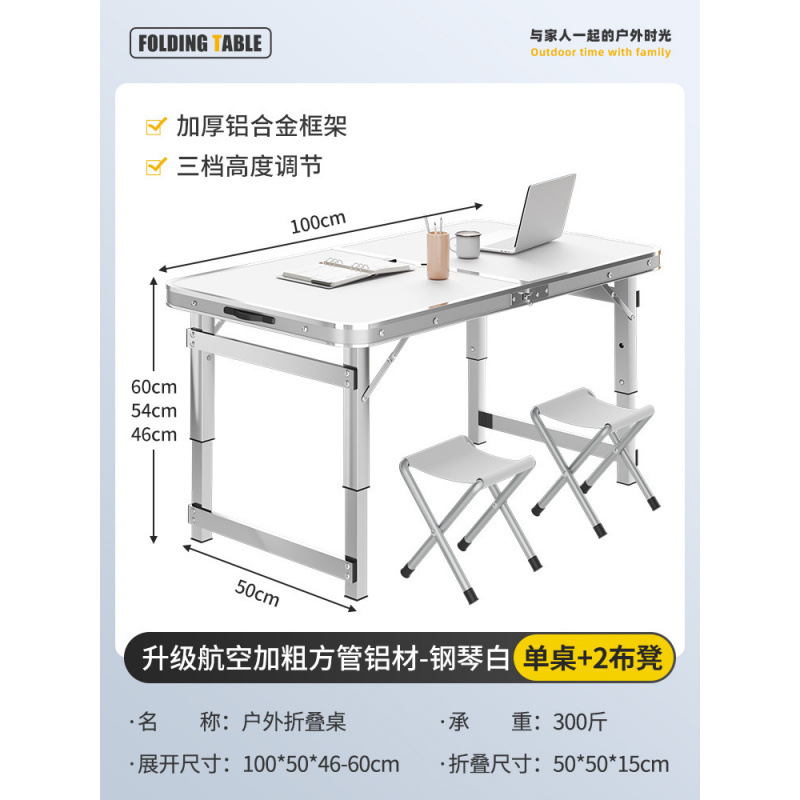 • [업그레이드된 항공 두꺼운 사각 튜브 알루미늄] 100cm 피아노 화이트 + 천 스툴 4개 설치 불필요★