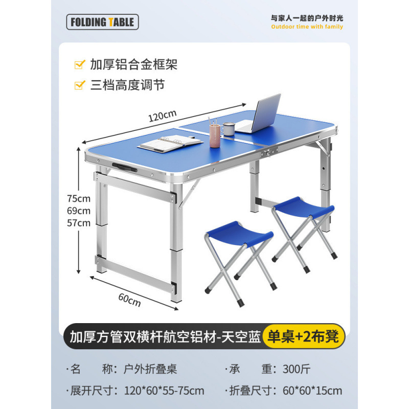 • [업그레이드된 항공 두꺼운 사각 튜브 알루미늄] 100cm 하늘색 + 천 스툴 4개 설치 불필요★