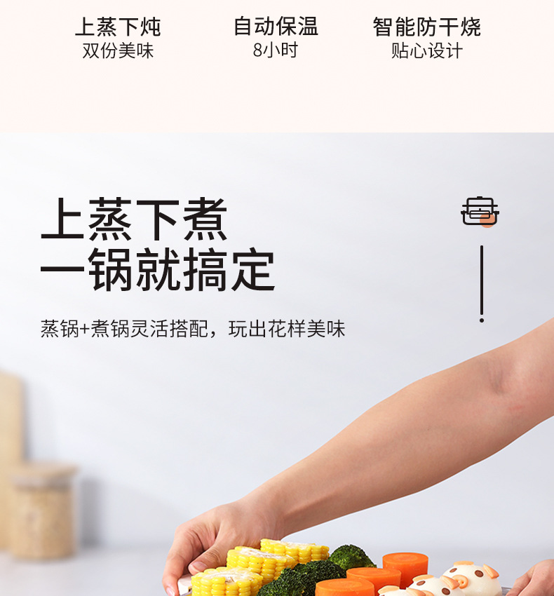 전기 기선 가정용 통합 다기능 소형 요리 대용량 다층 기선 지능형 예약 스튜 뜨거운 냄비