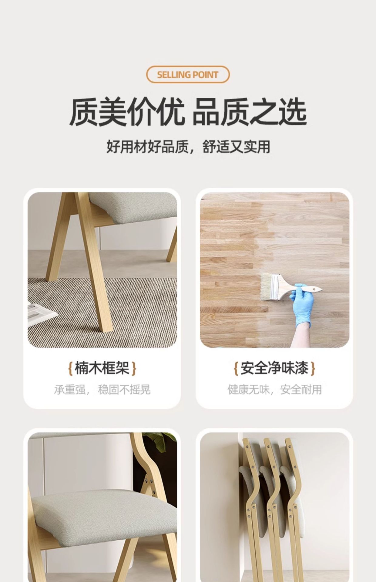 원목 접이식 의자, 가정용 의자, 작은 아파트 식당 의자, 공간을 차지하지 않는 마작 의자, 휴대용 사무실 컴퓨터 의자