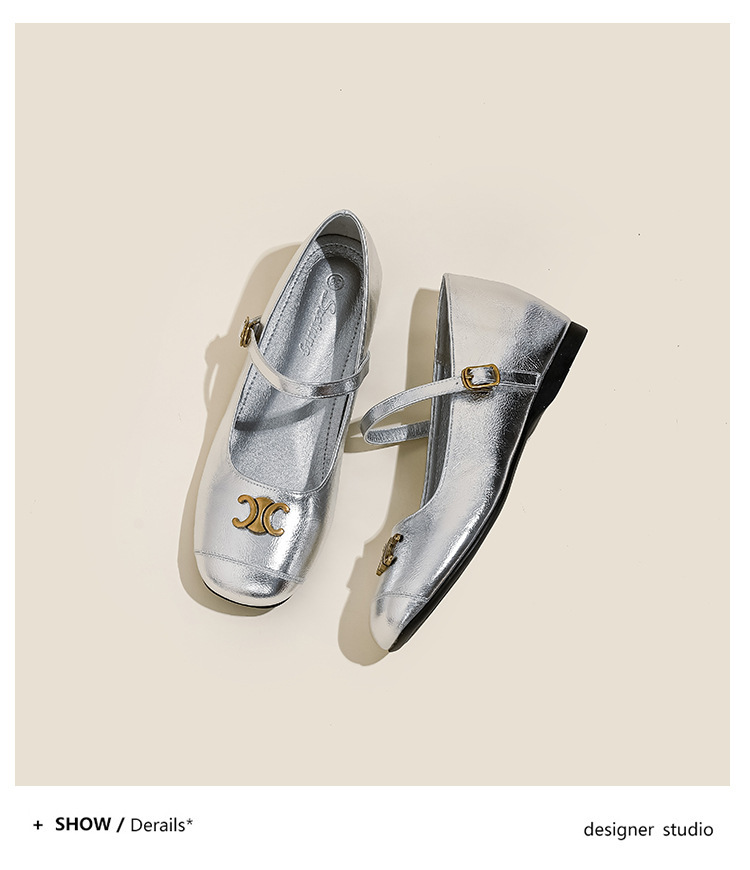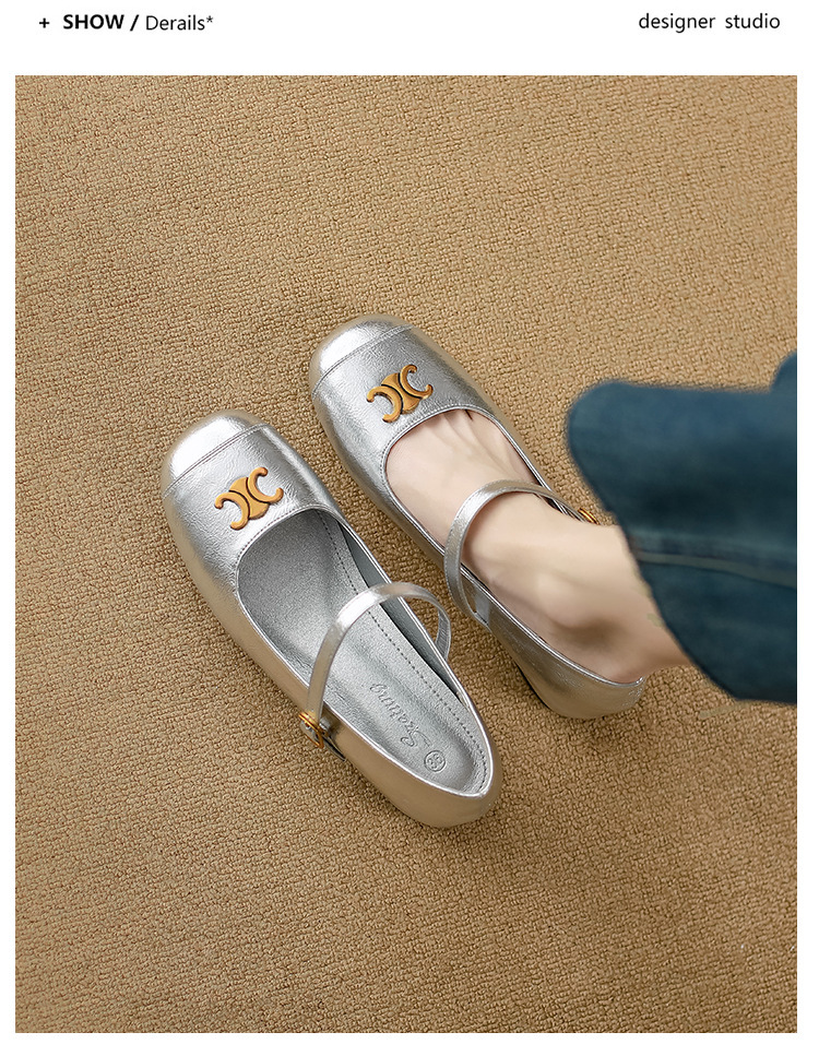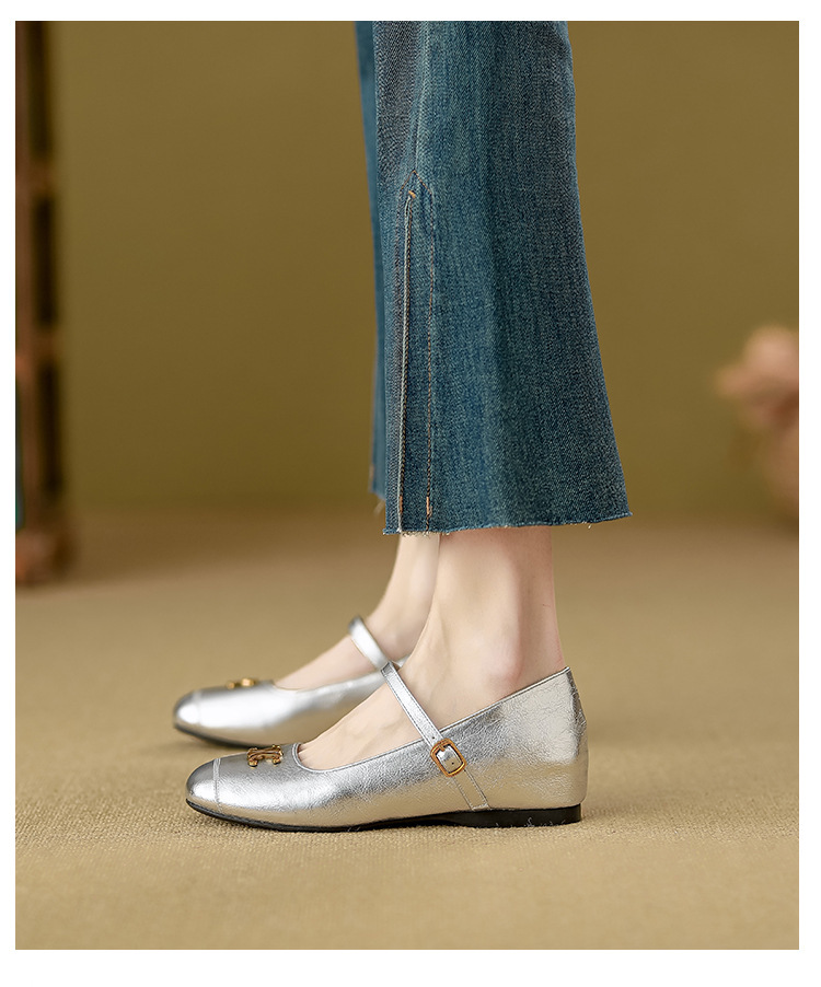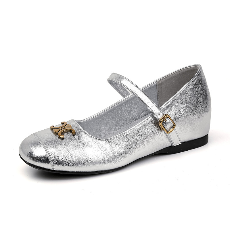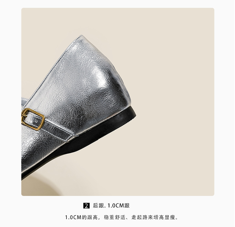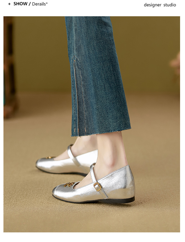 실버 5CM 정품 가죽 높이 증가 메리 제인 신발 콩 신발 골드 버튼 작은 가죽 신발 여성의 부드러운 얼굴 플랫 복고풍 싱글 신발