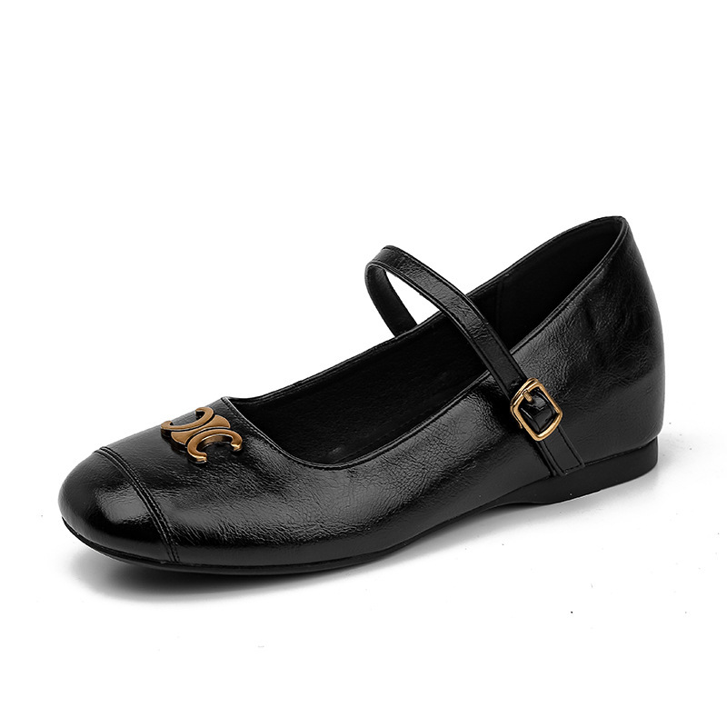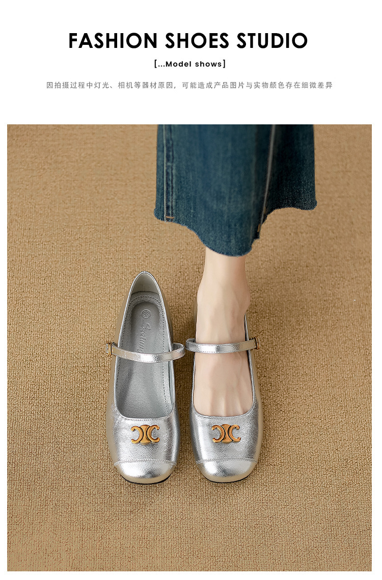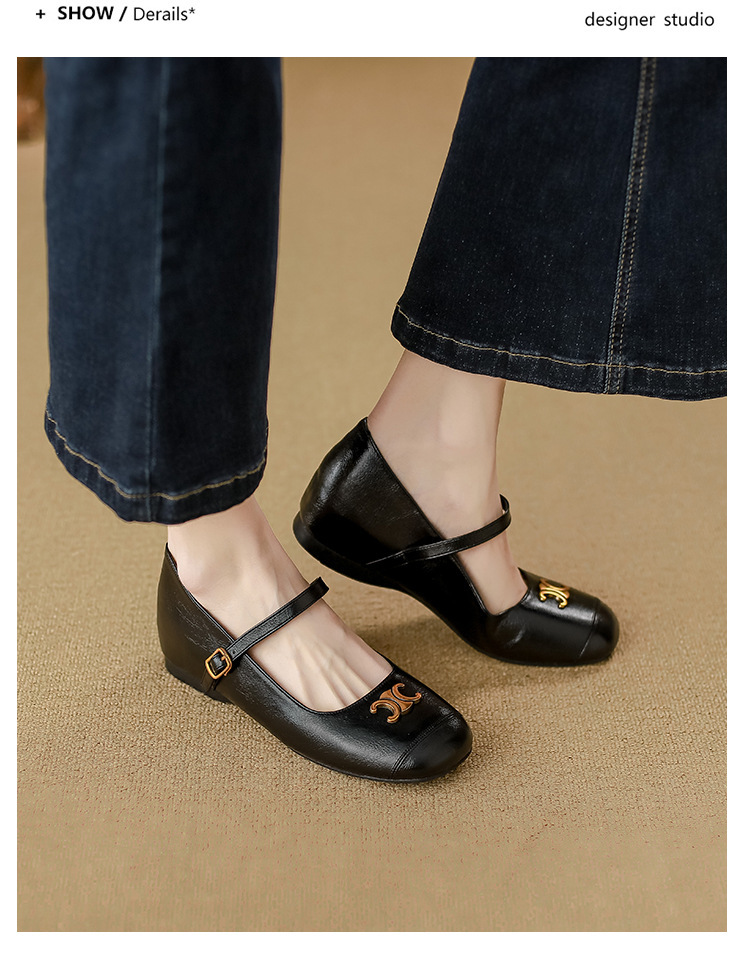 실버 5CM 정품 가죽 높이 증가 메리 제인 신발 콩 신발 골드 버튼 작은 가죽 신발 여성의 부드러운 얼굴 플랫 복고풍 싱글 신발스토어 가기