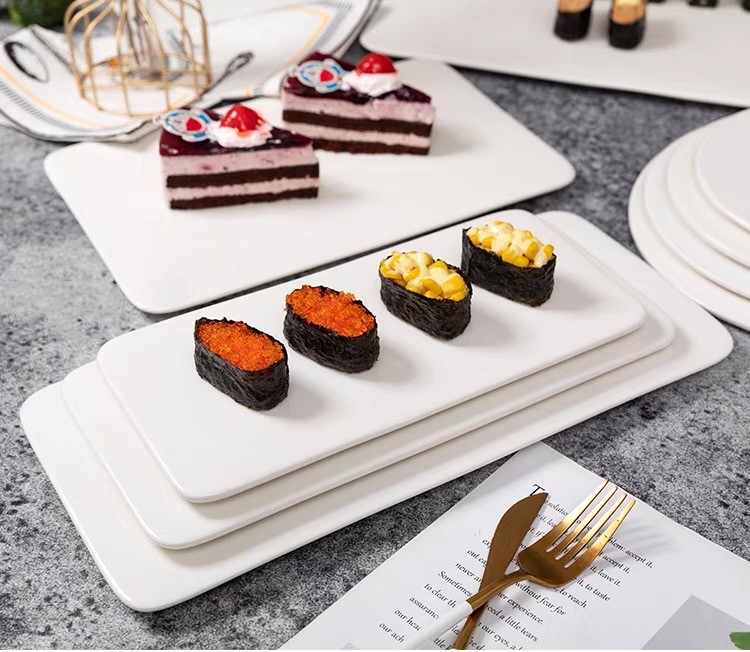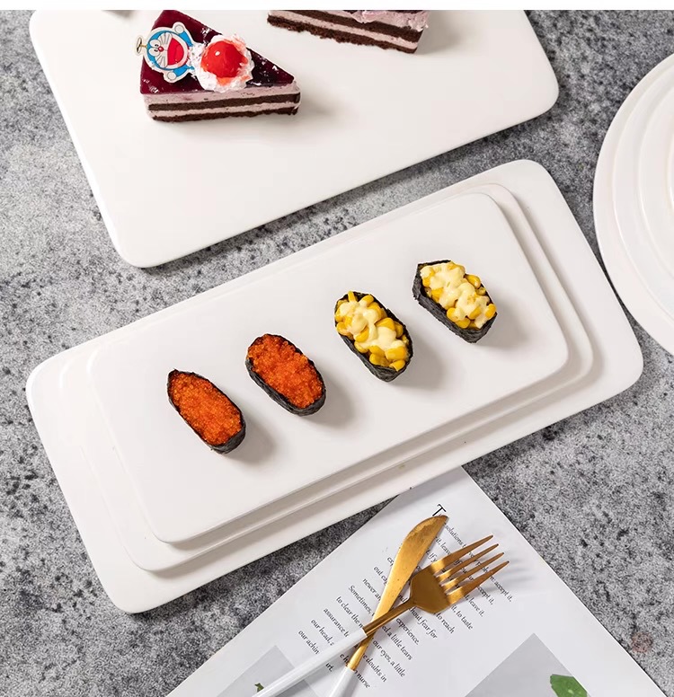 세라믹 직사각형 플랫 플레이트 스시 플랫 플레이트 케이크 스낵 스낵 플레이트 호텔 서양 음식 플레이트 백자 식기스토어 가기