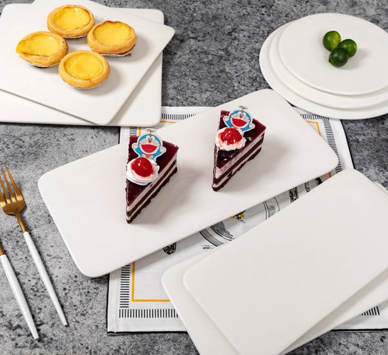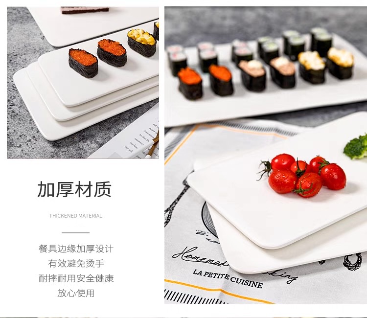 세라믹 직사각형 플랫 플레이트 스시 플랫 플레이트 케이크 스낵 스낵 플레이트 호텔 서양 음식 플레이트 백자 식기