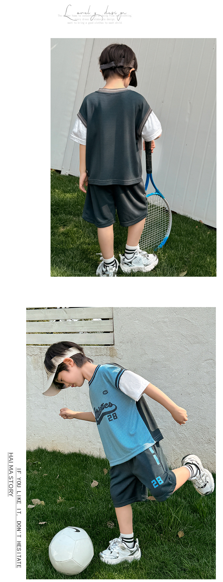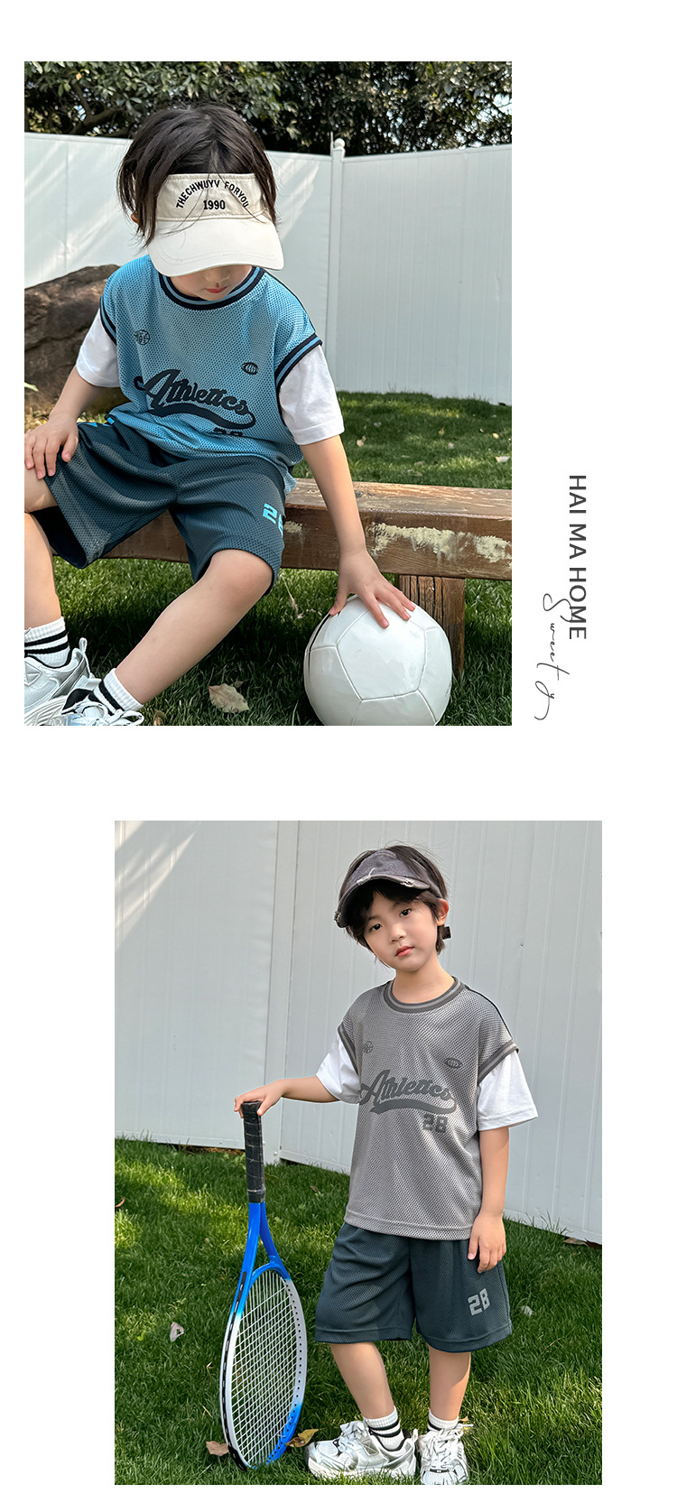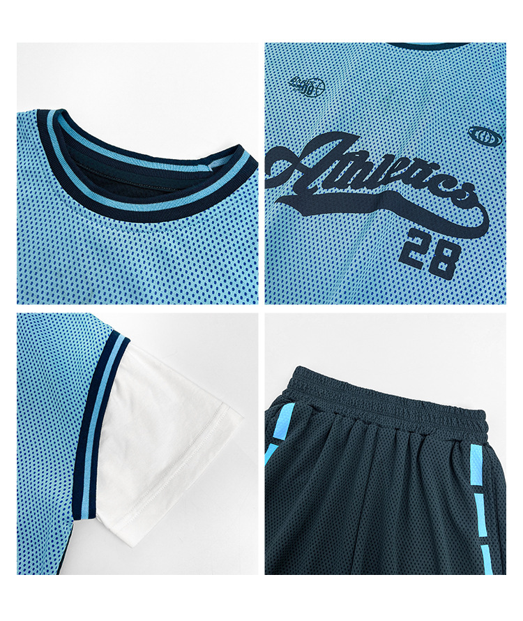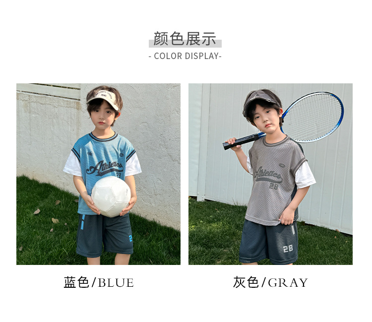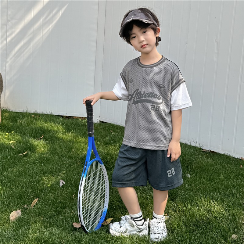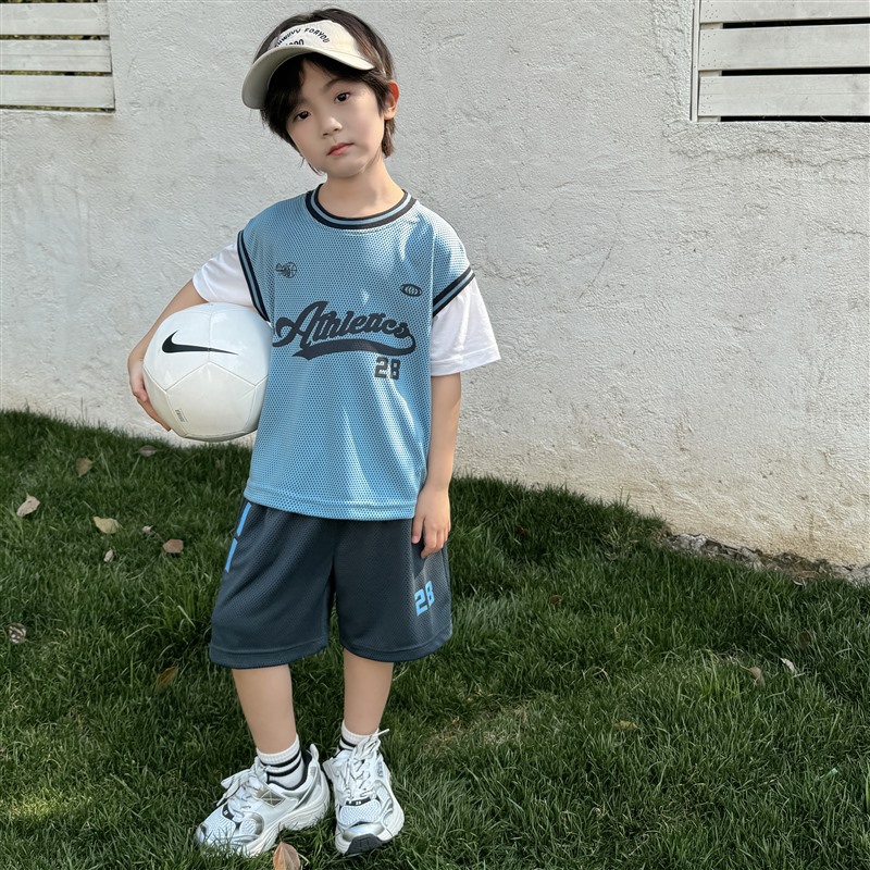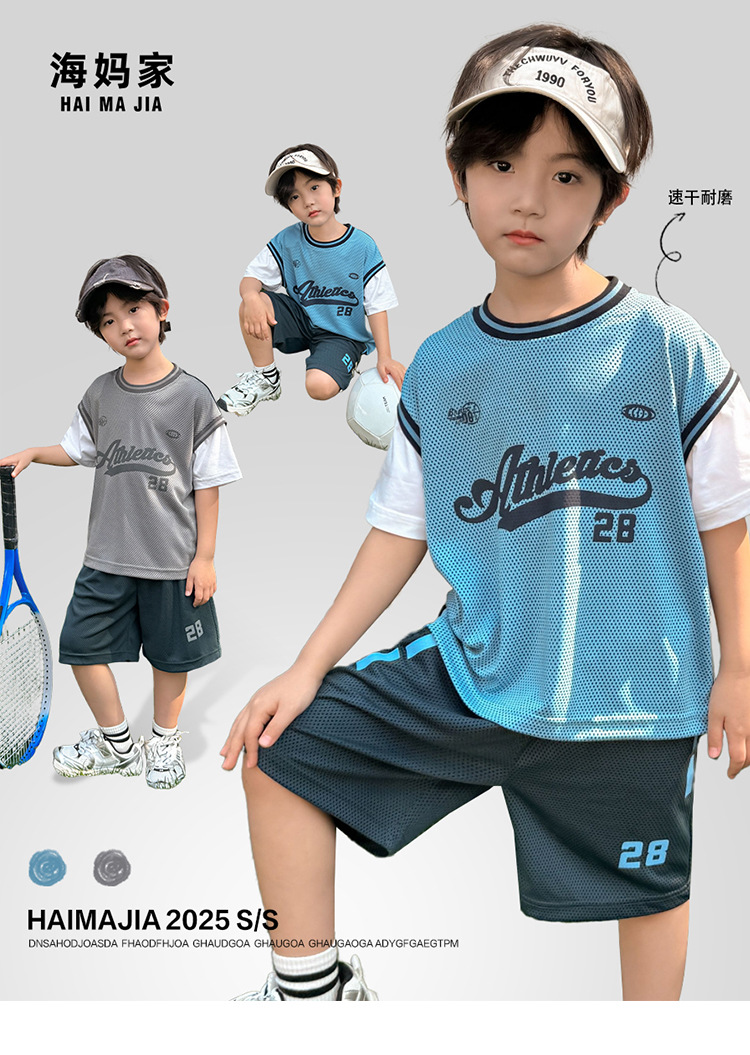 남아용 메쉬 스포츠 세트 농구복 반팔 반바지 시원한 느낌의 하이마지아 2026 여름 신상품 중대형 아동용