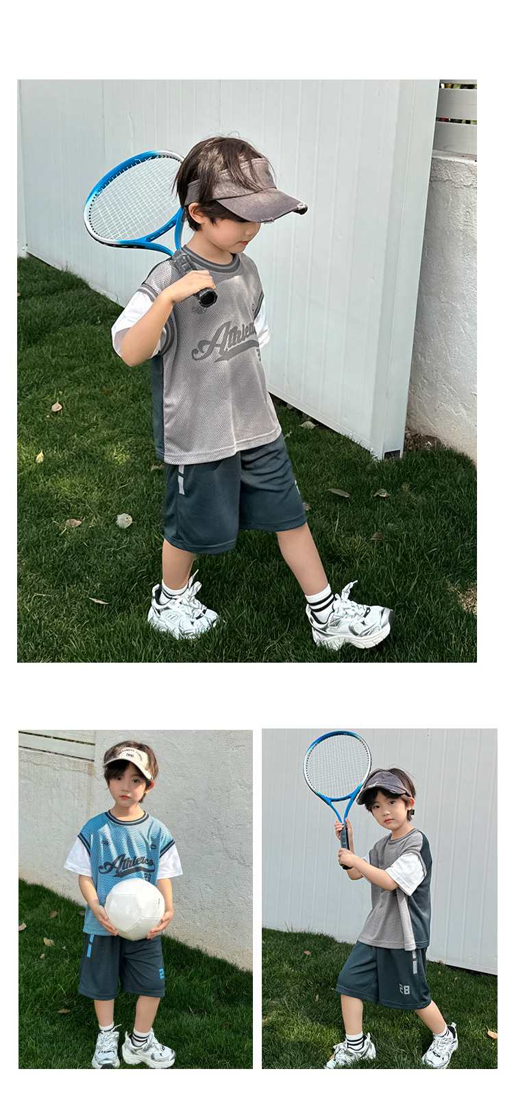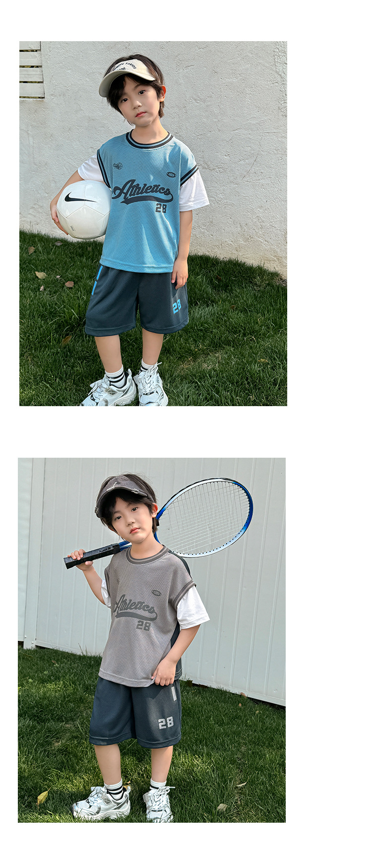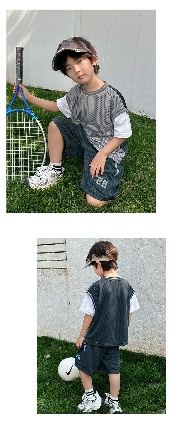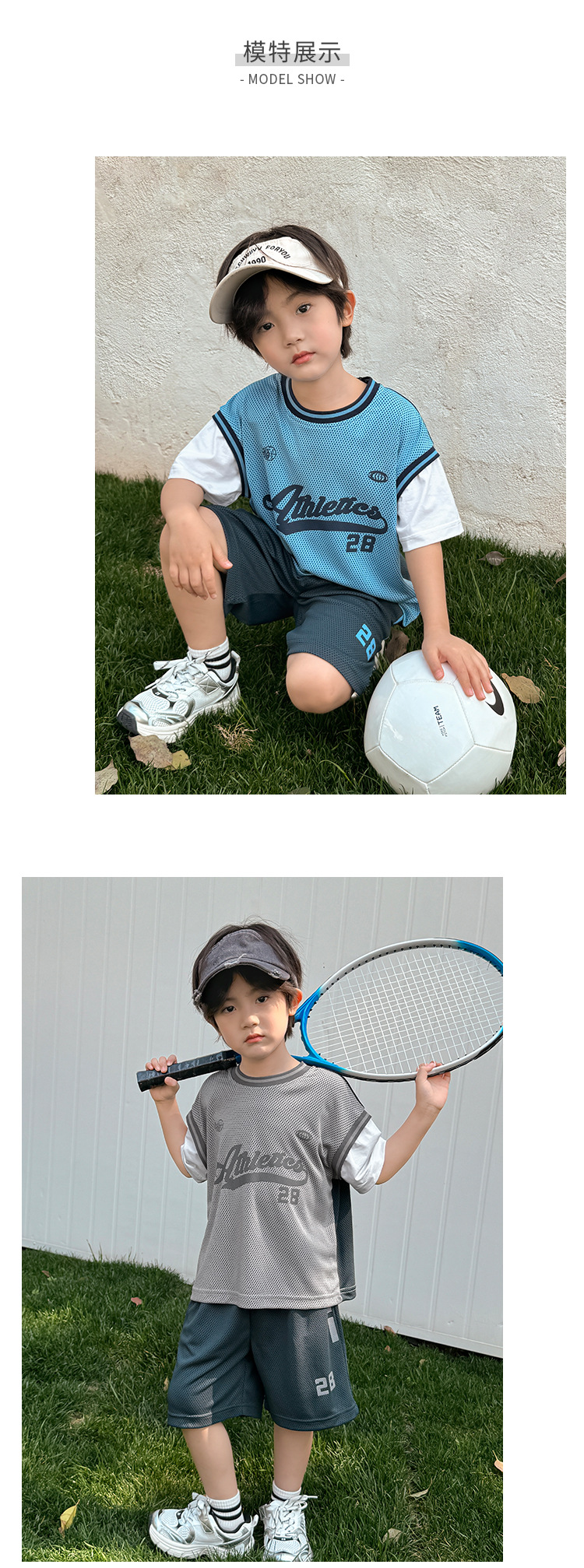남아용 메쉬 스포츠 세트 농구복 반팔 반바지 시원한 느낌의 하이마지아 2026 여름 신상품 중대형 아동용