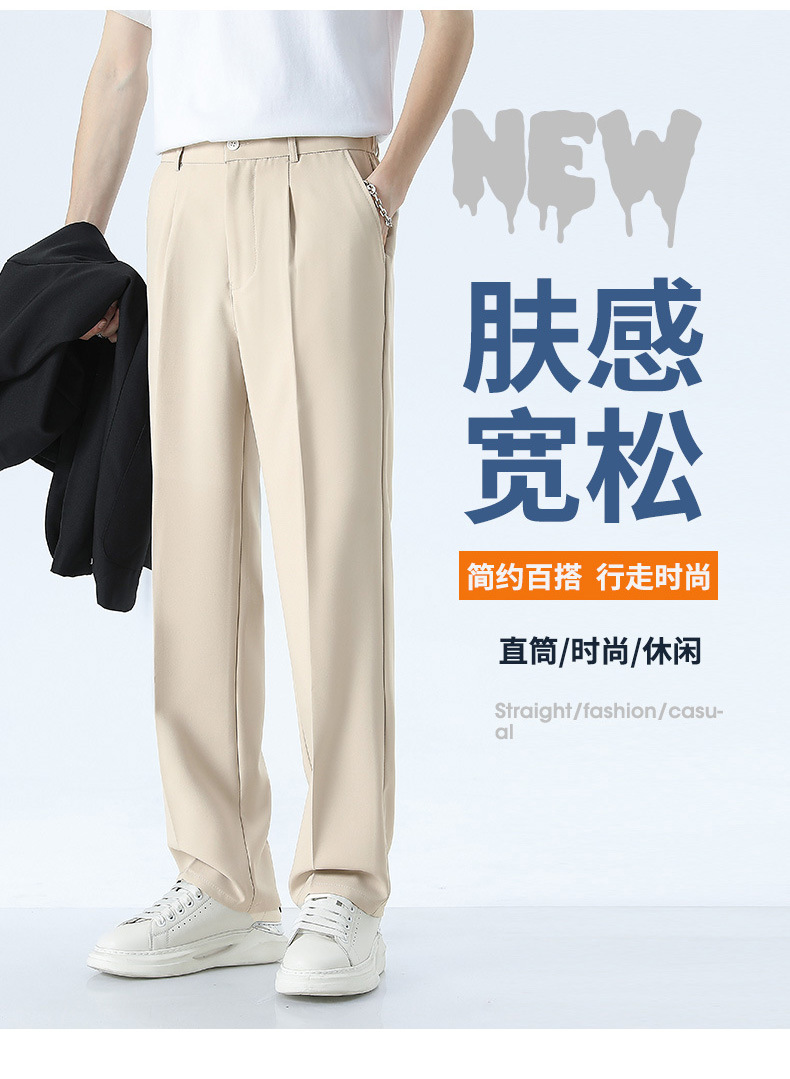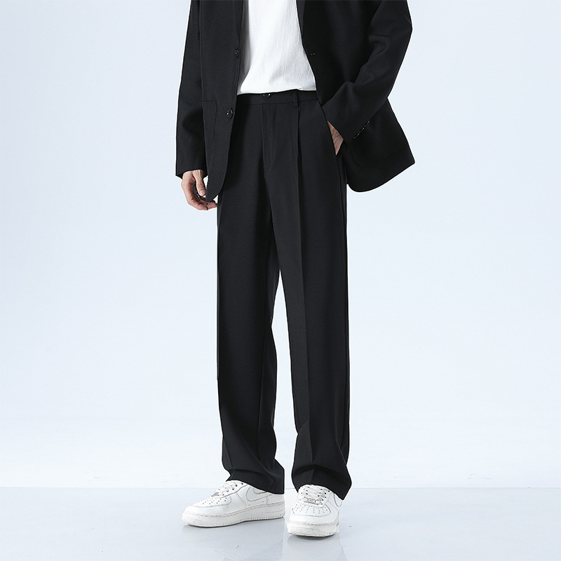 서양 바지 남자 2025 년 봄과 여름 낙담 감각 고급 캐주얼 바지 느슨한 스트레이트 올 매치 블랙 세트 바지 남자