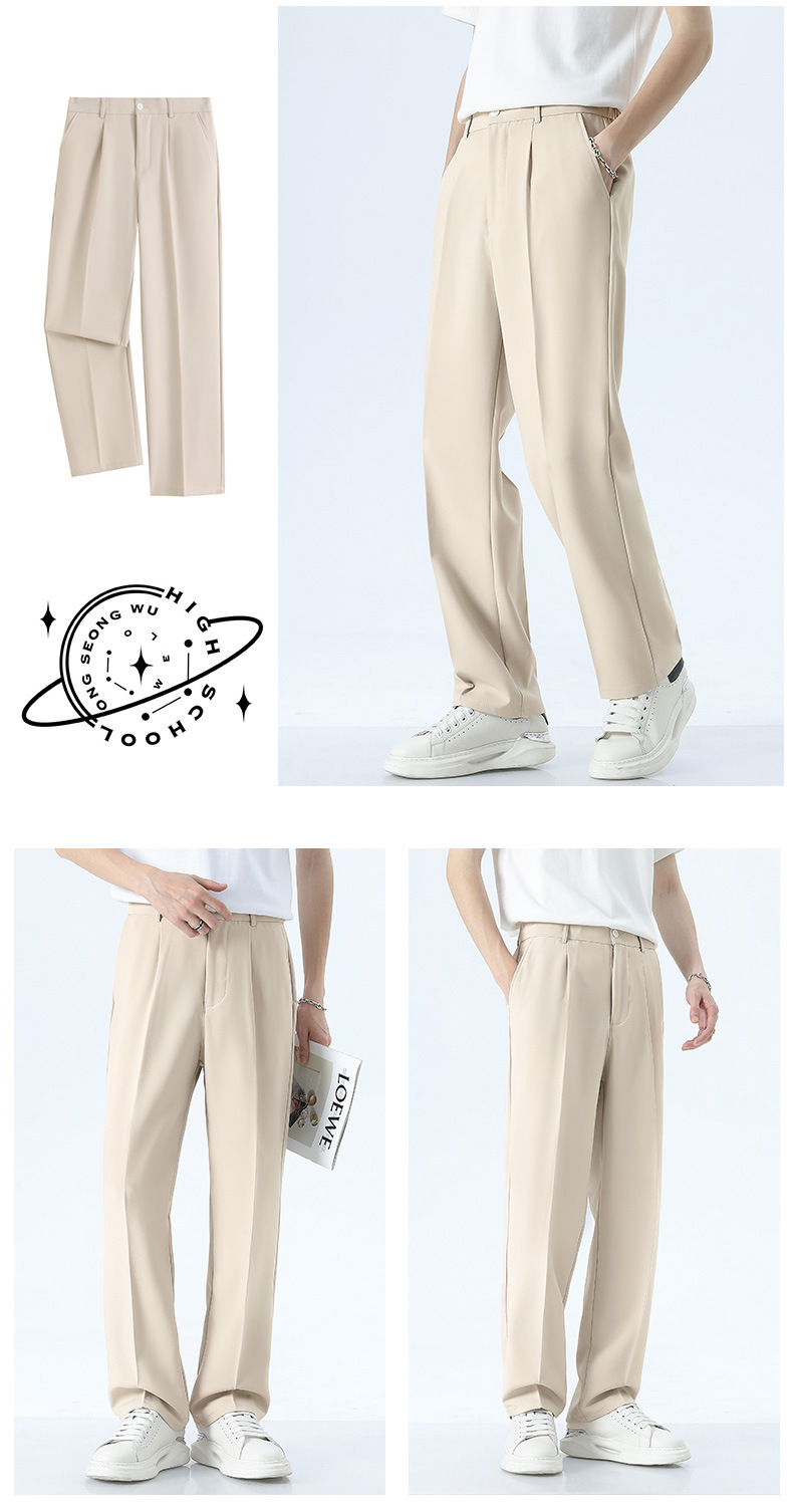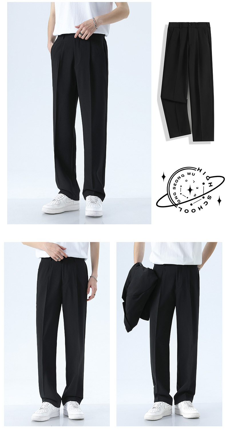 서양 바지 남자 2025 년 봄과 여름 낙담 감각 고급 캐주얼 바지 느슨한 스트레이트 올 매치 블랙 세트 바지 남자스토어 가기