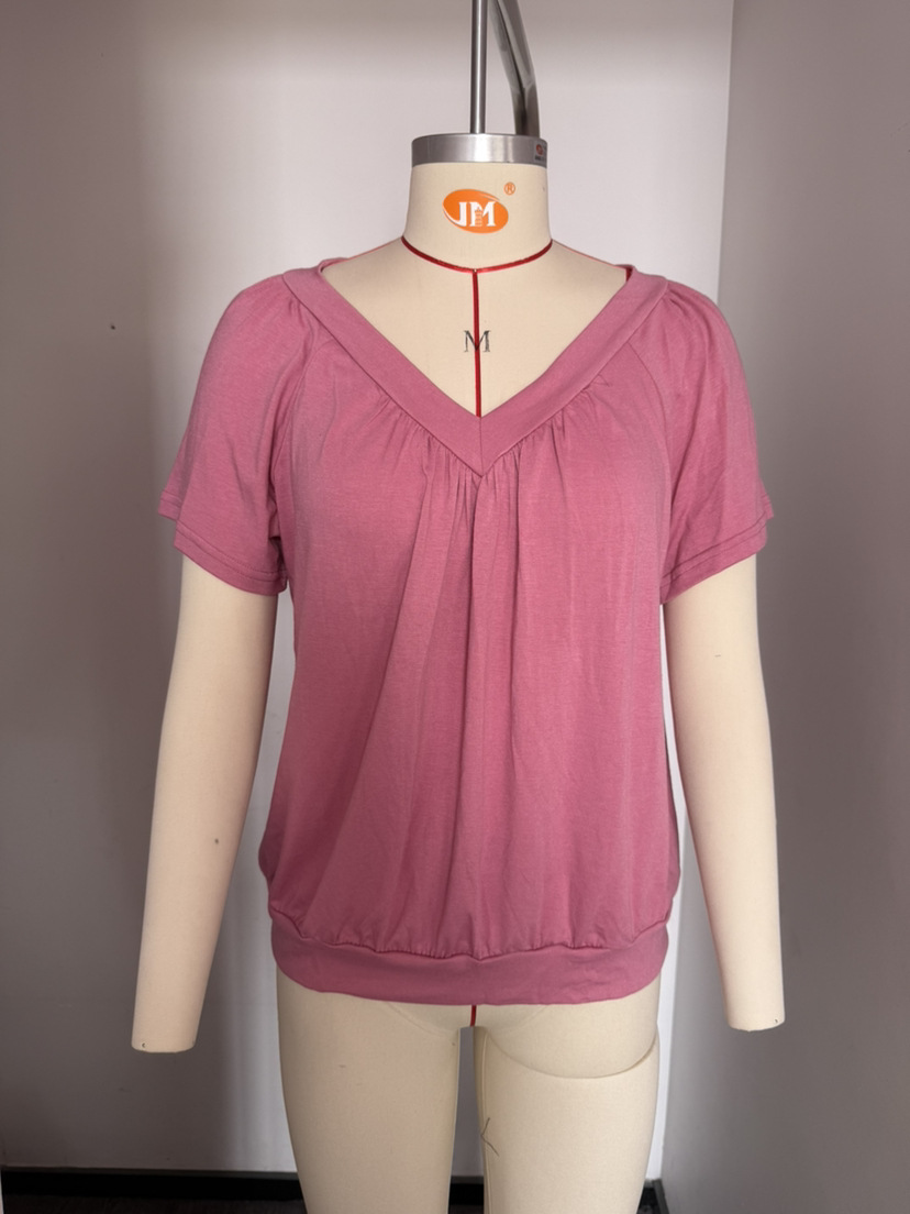 아마존 유럽과 미국 국경 2025 여름 TK 여성의 새로운 V 넥 주름 느슨한 반소매 면화 티셔츠