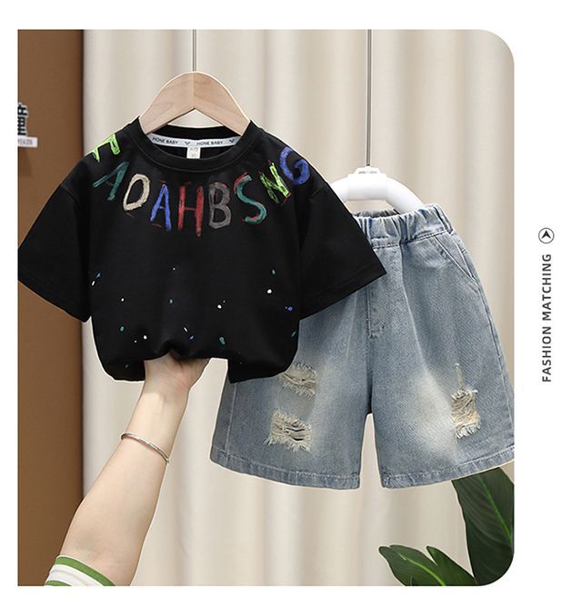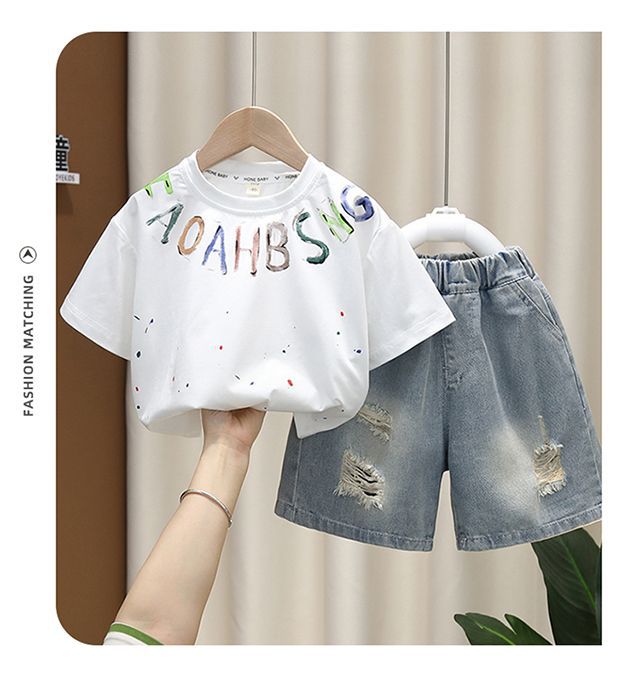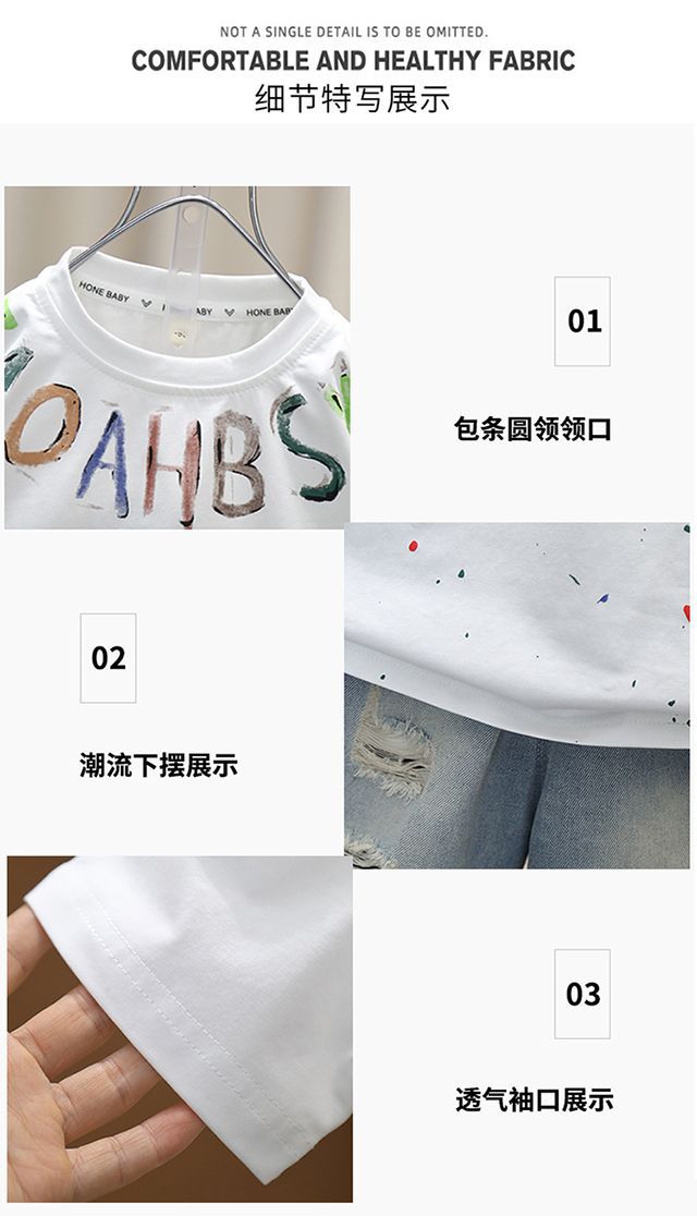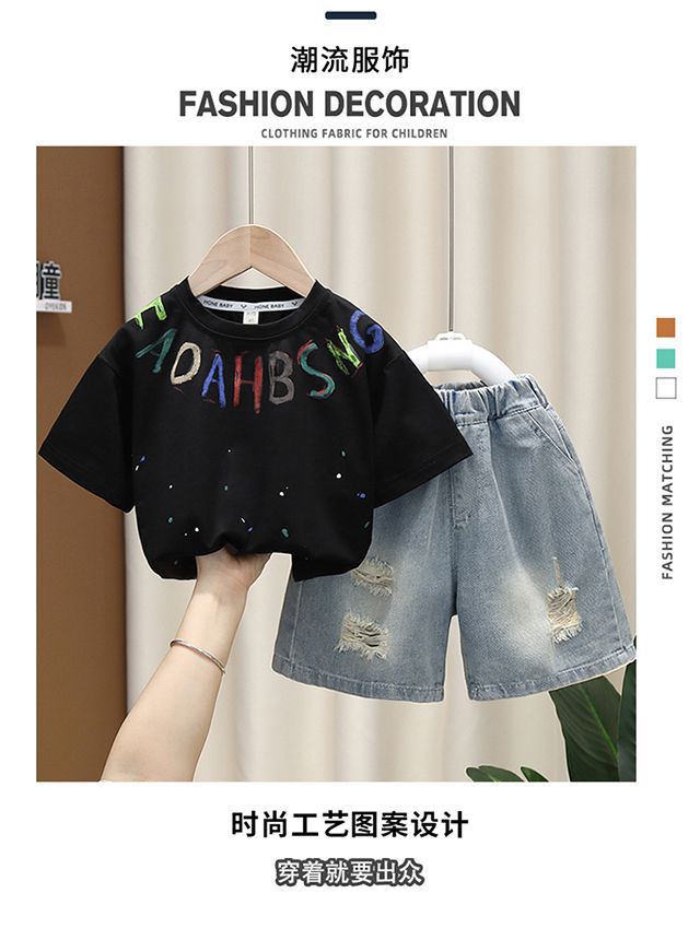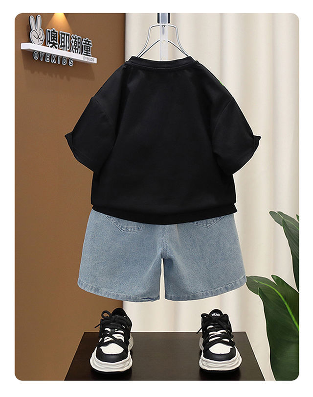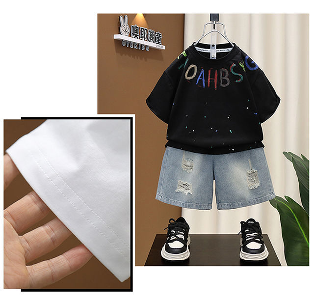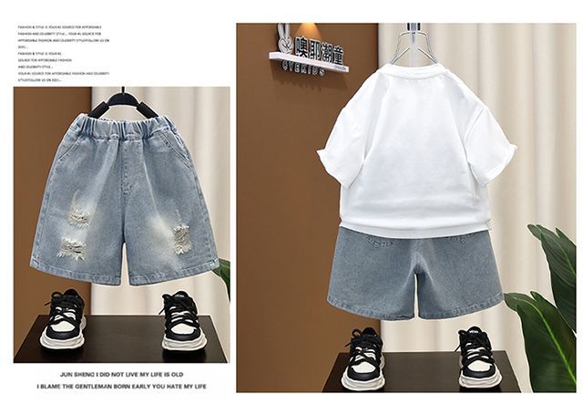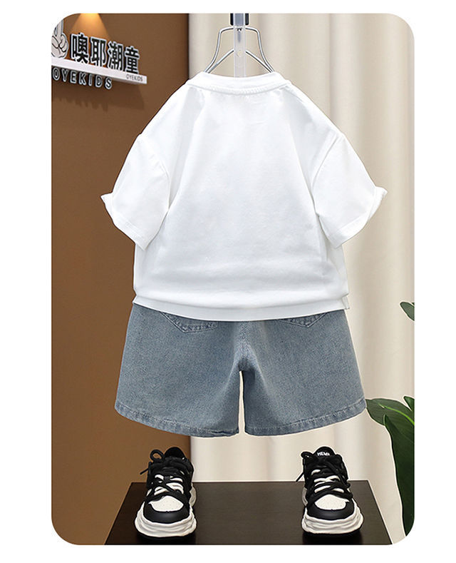 소년 여름 세트 유행 아기 반팔 옷 2024 새로운 스타일 어린이 캐주얼 여름 얇은 티셔츠스토어 가기