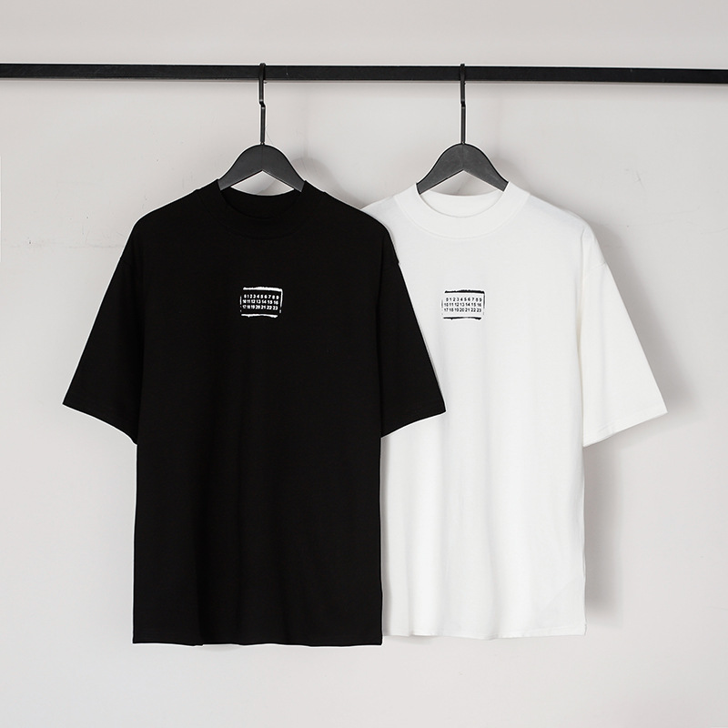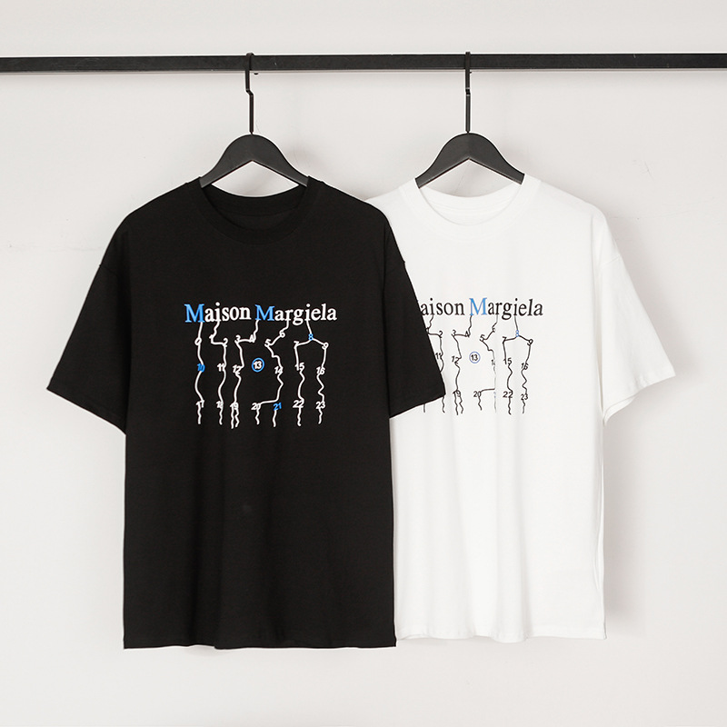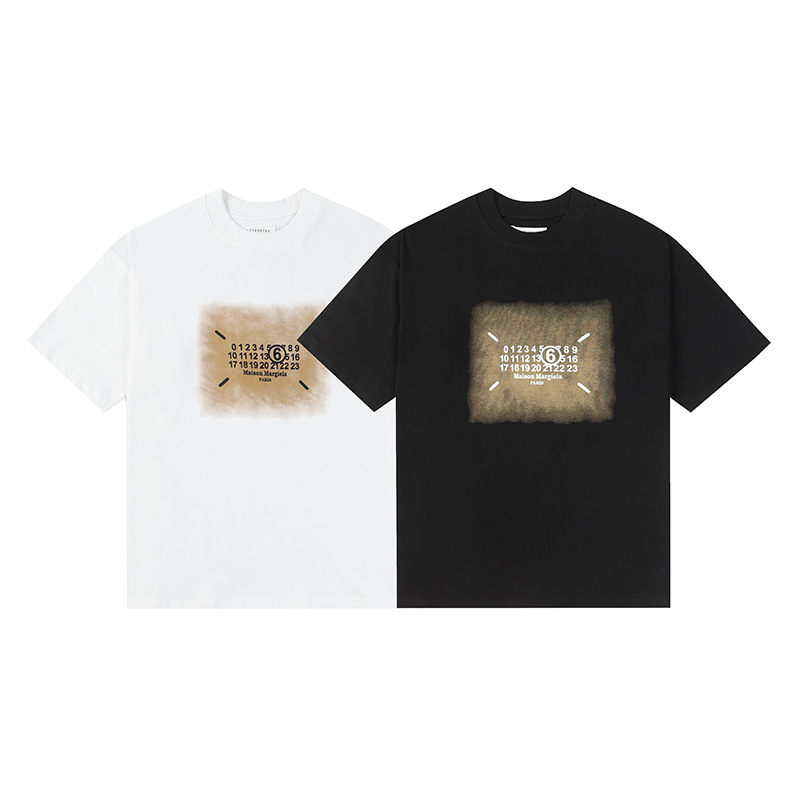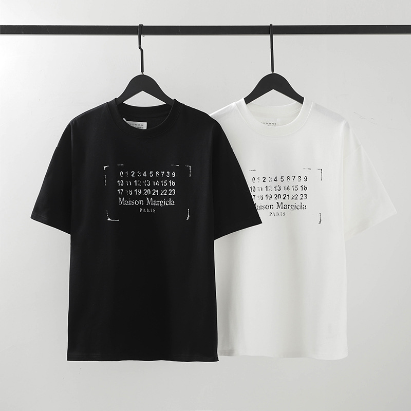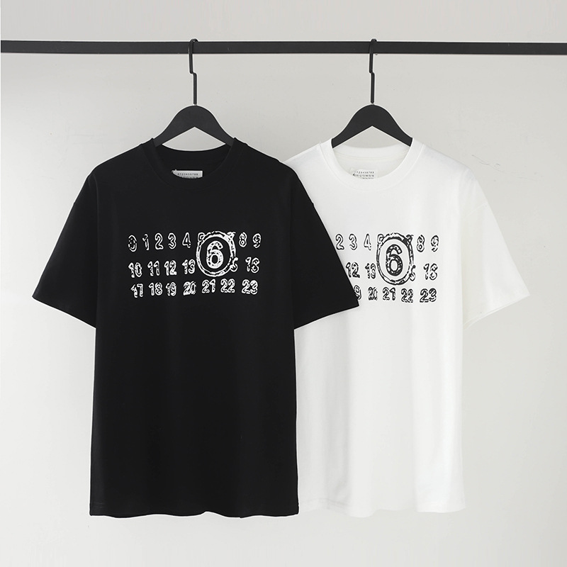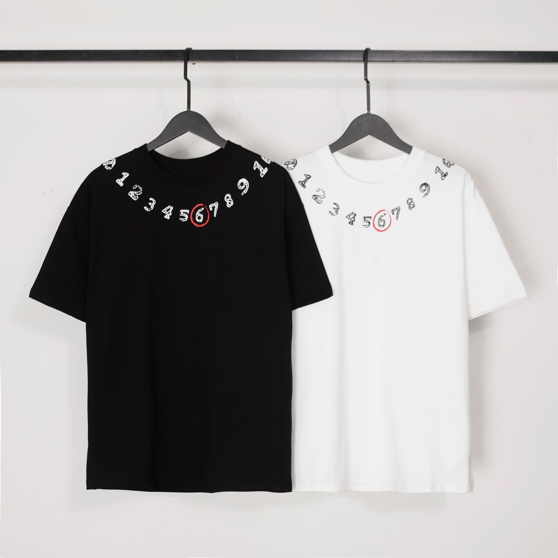 국경 간 Maison Margiela Margiela 디지털 인쇄 MM6 순수 코튼 고품질 남성 티셔츠 여성 반팔 트렌드