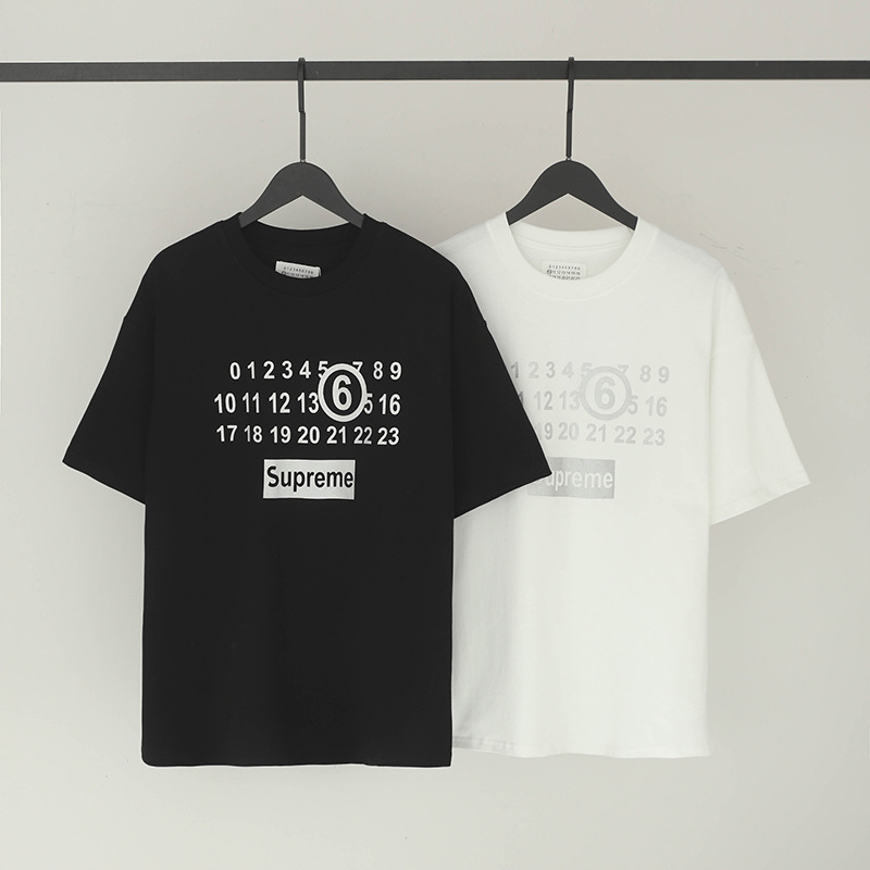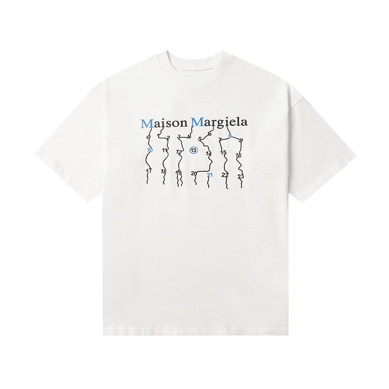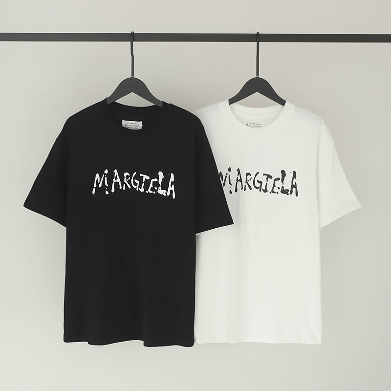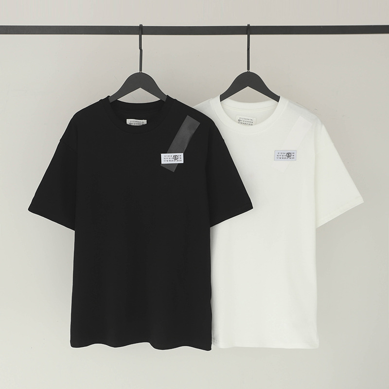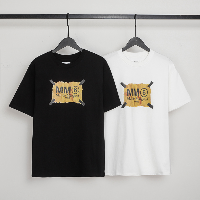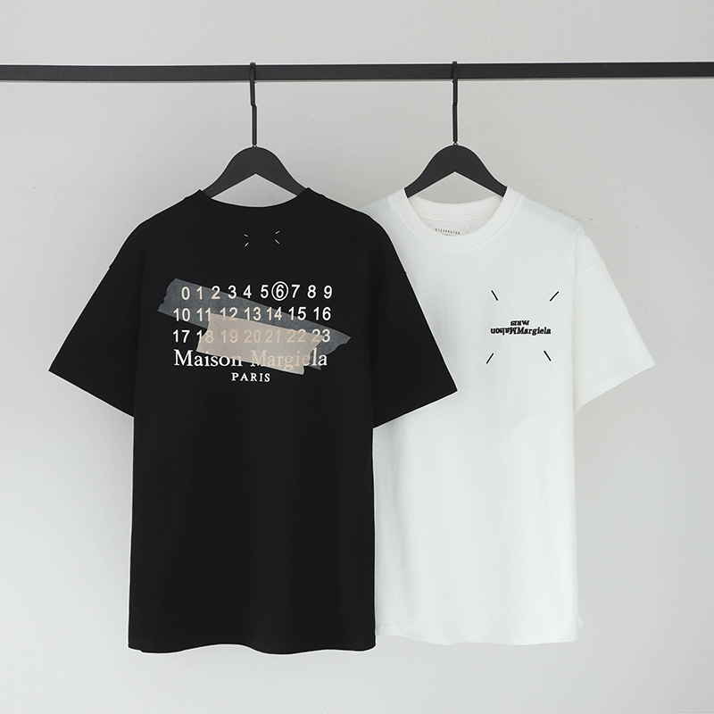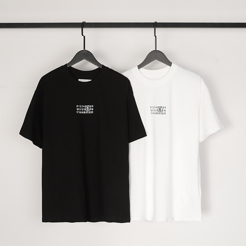 국경 간 Maison Margiela Margiela 디지털 인쇄 MM6 순수 코튼 고품질 남성 티셔츠 여성 반팔 트렌드