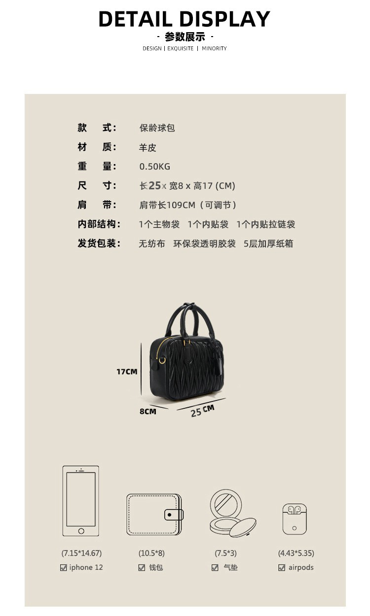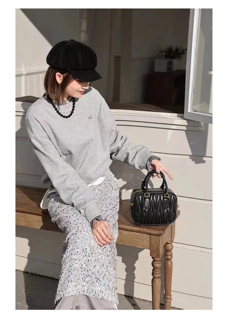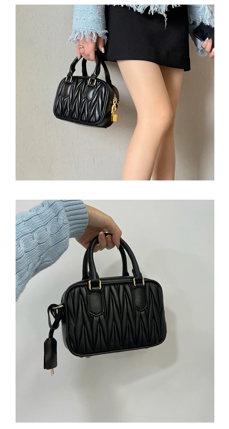 새로운 도착 양가죽 주름 미니 볼링 가방 보스턴 가방 휴대용 베개 가방 하이 퀄리티 크로스 바디 어깨 가방