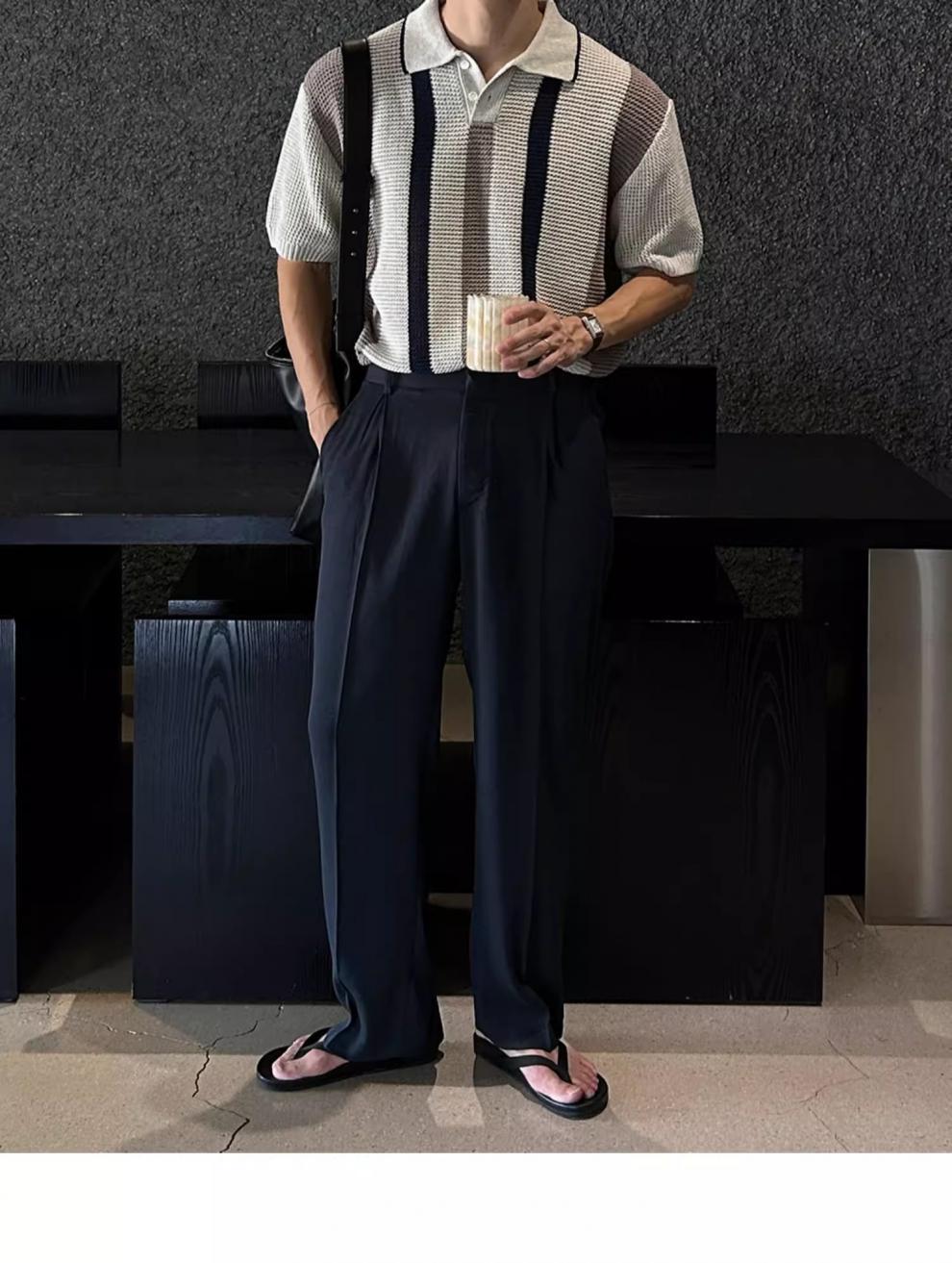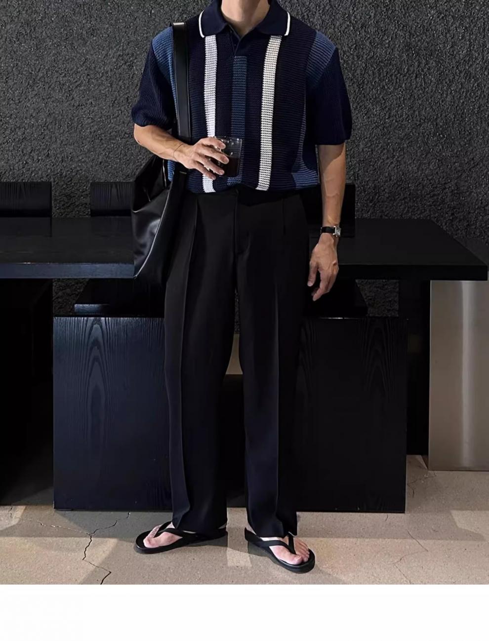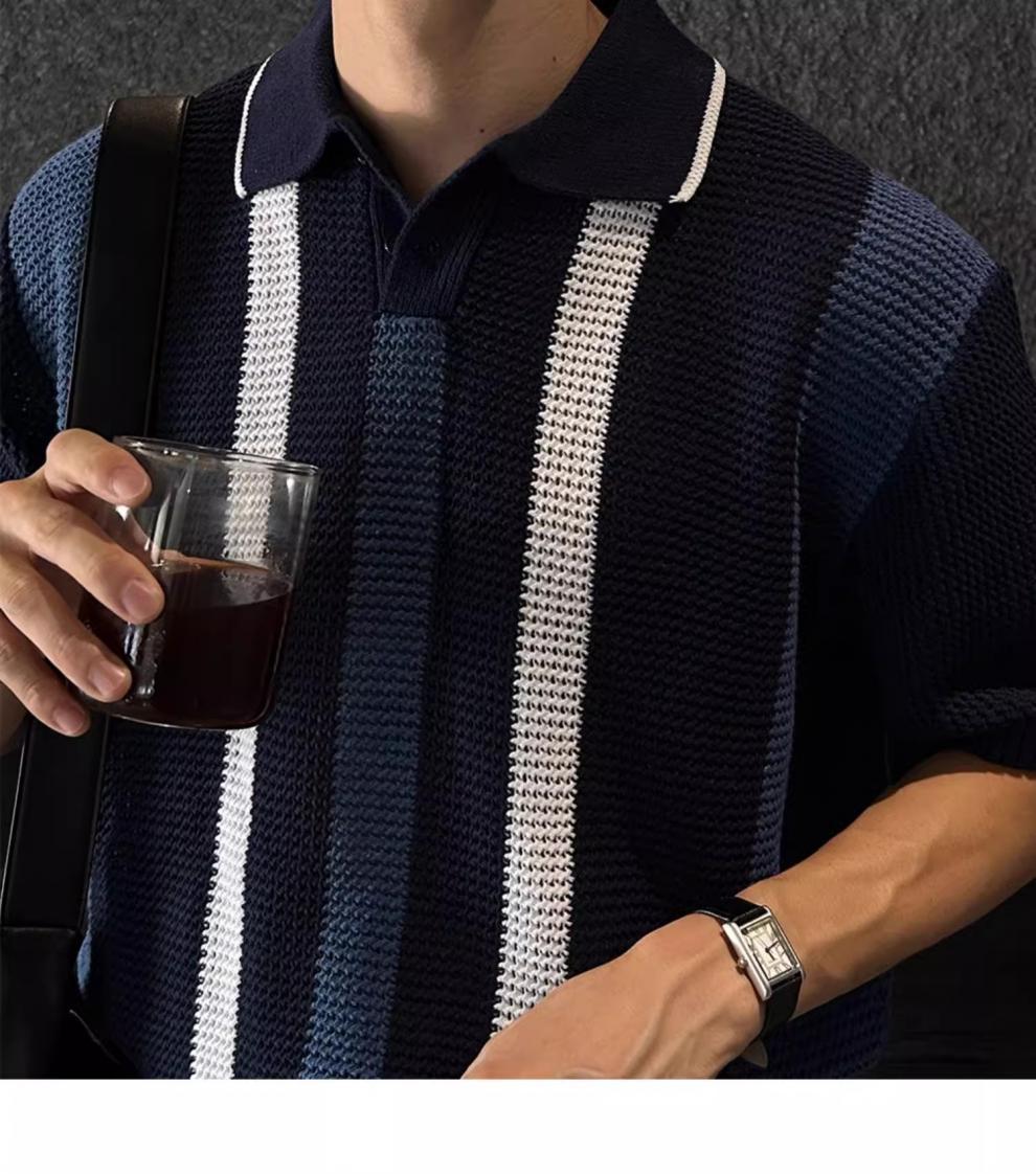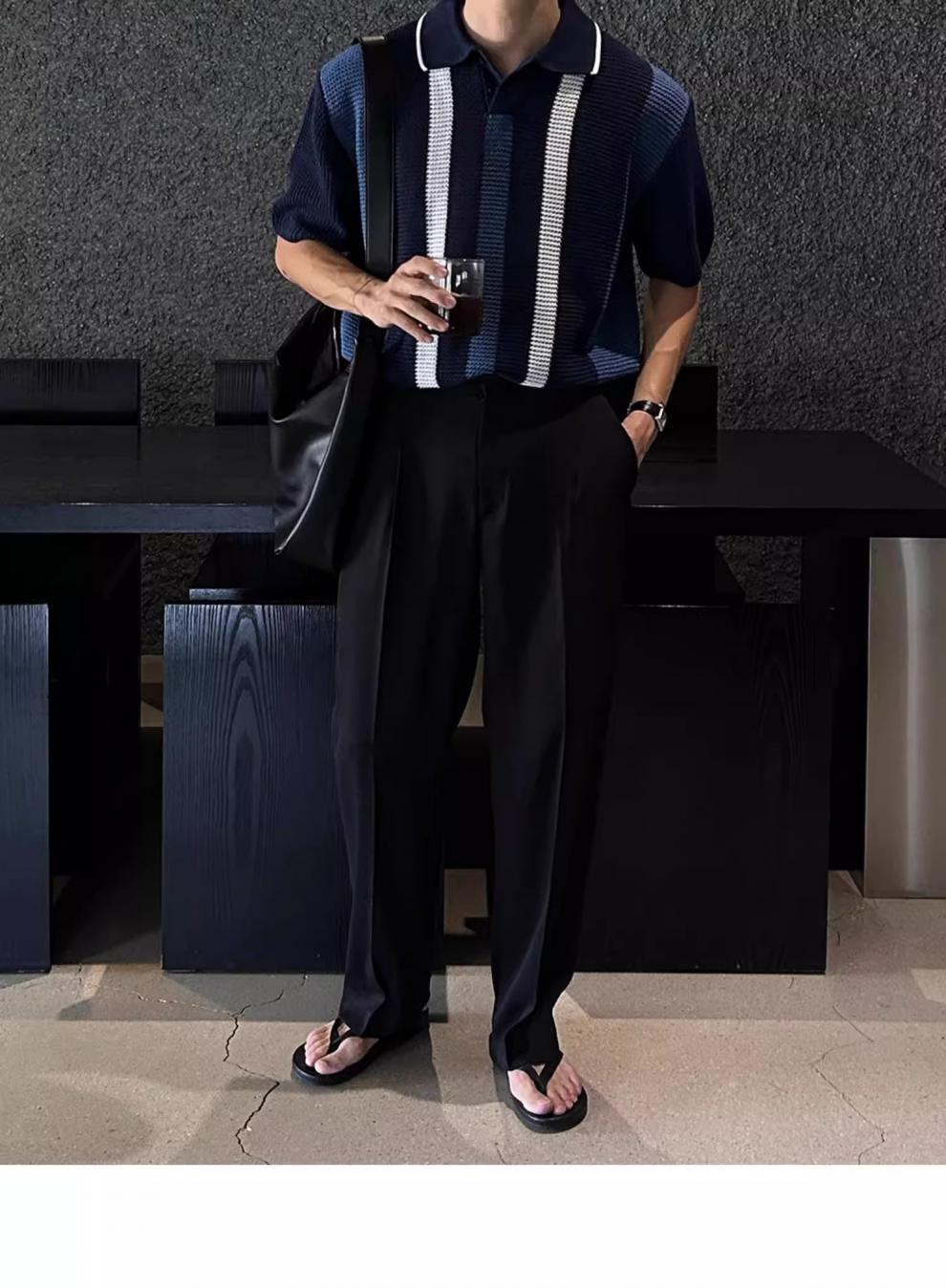 미국의 터프 가이 빈 셔츠 근육 남자 스트라이프 느슨한 반팔 카디건 아이스 쿨 실크 니트 셔츠 재킷스토어 가기