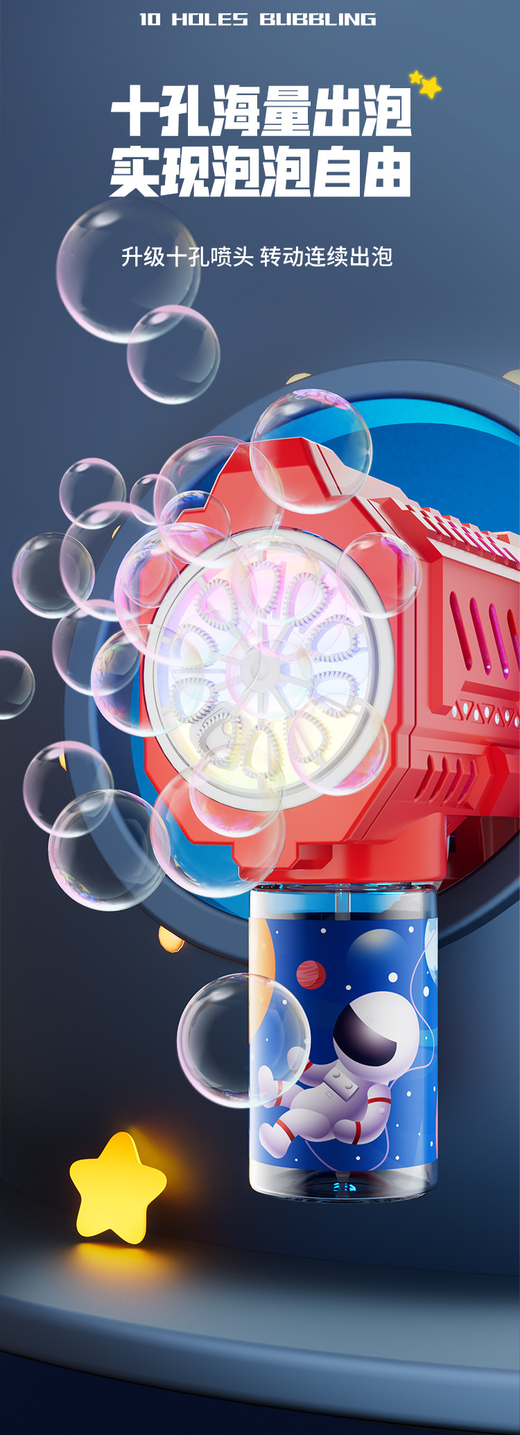 2025 새로운 공간 10 구멍 그물 유명한 어린이 전기 휴대용 거품 기계 어린이 자동 거품 총 방수