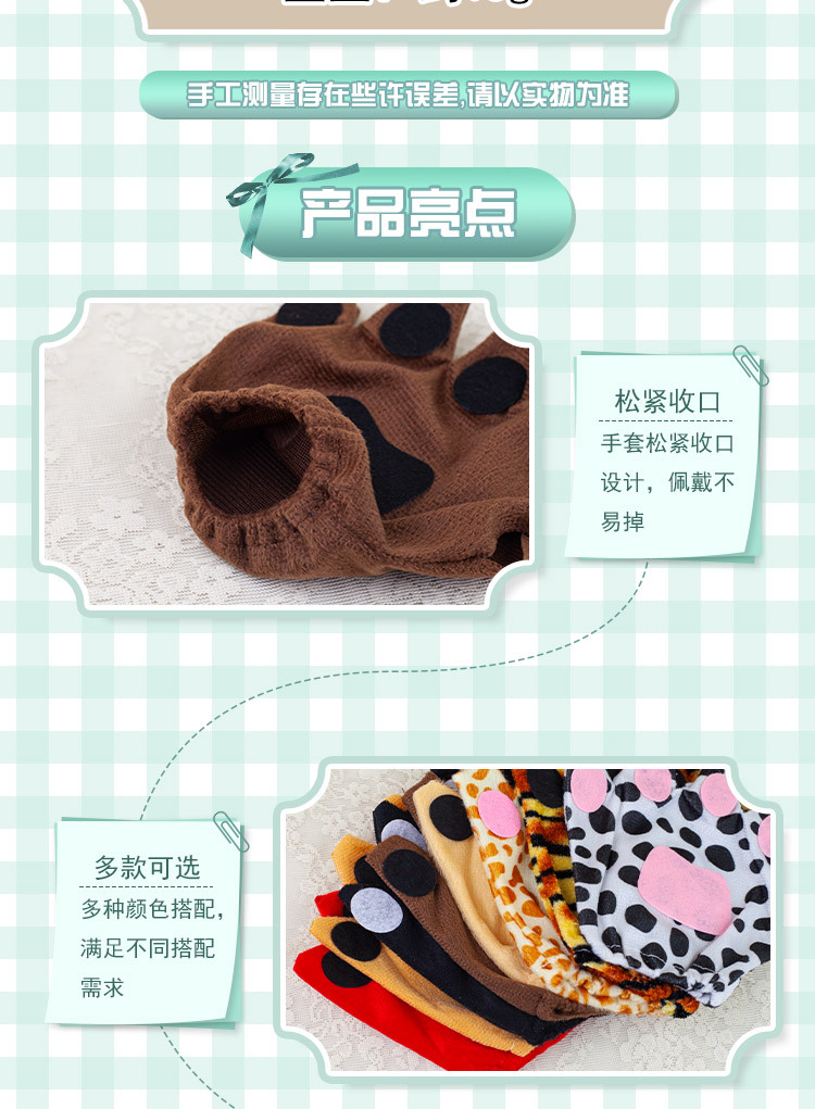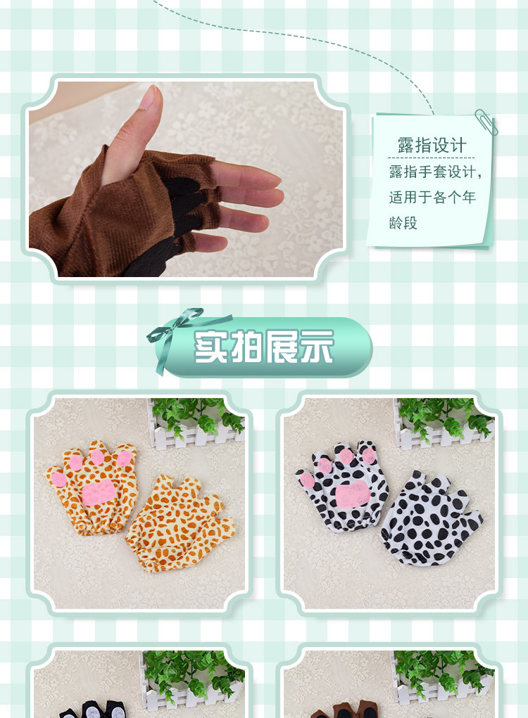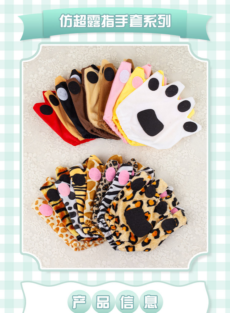 할로윈 만화 동물 쇼 드레스업 사자 핑거리스 장갑 귀여운 여우 늑대 오픈 핑거리스 장갑 고양이 발스토어 가기